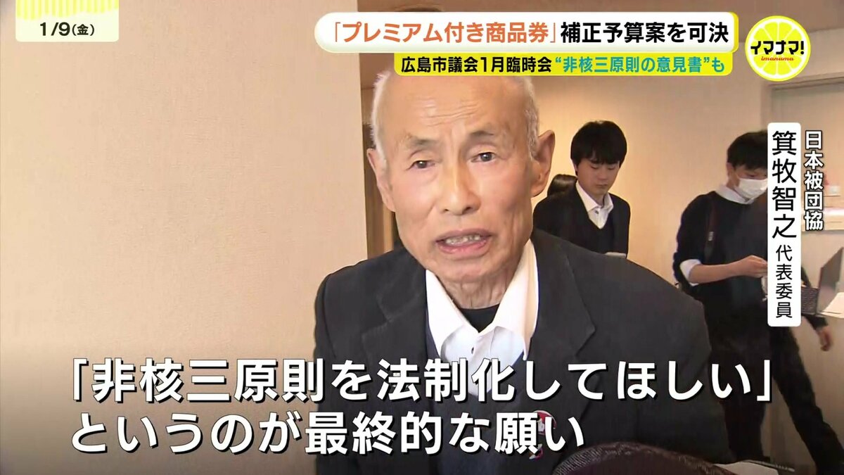 可決を受け、日本被団協の箕牧智之代表委員は「非核三原則を法制化してほしいというのが最終的な願いですから」と話し、法制化に向けた一歩だと評価しました。