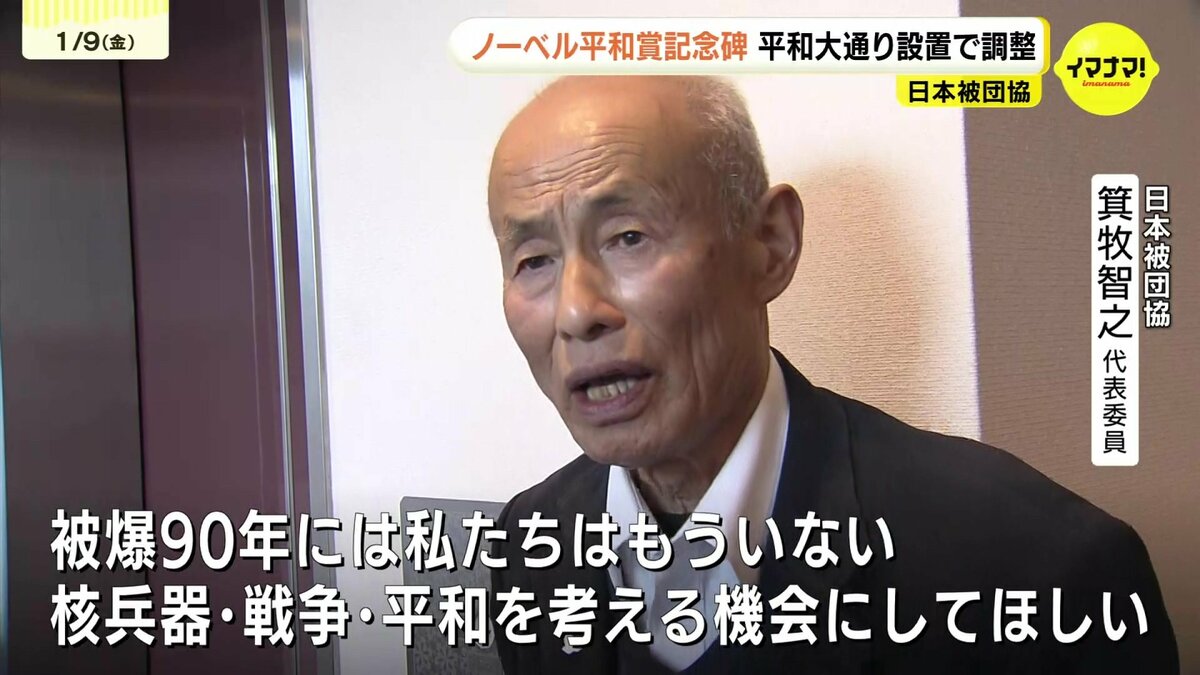 2024年にノーベル平和賞を受賞した日本被団協は、広島・長崎・東京の3か所に記念碑の設置を検討しています。ノーベル平和賞の功績を伝え、核兵器廃絶の決意を示すための記念碑で、大きさや設置の時期など具体的なことは、今後調整を進めます。