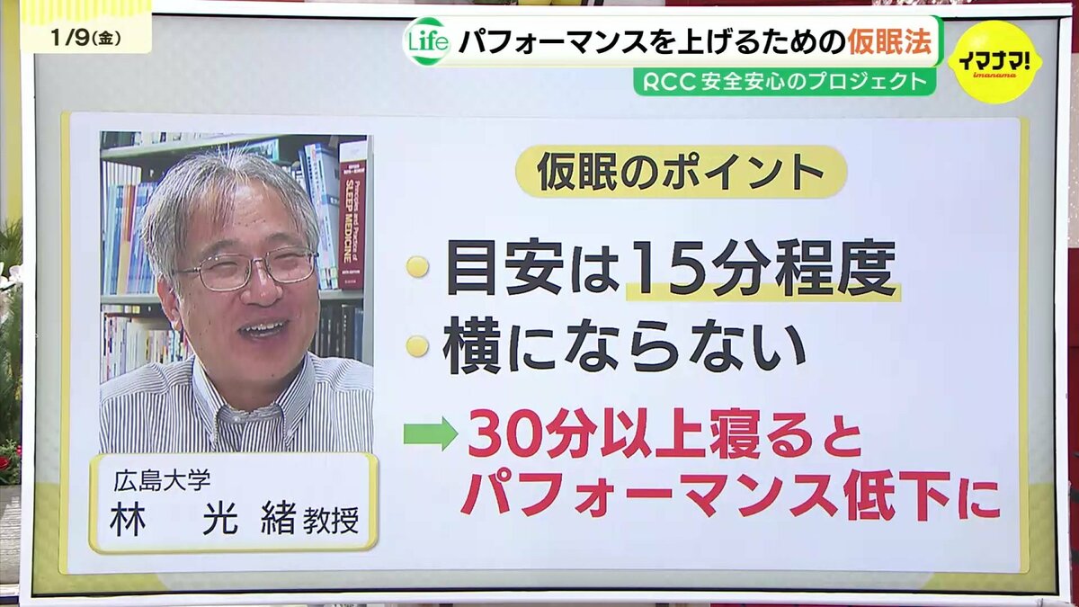 日中に激しい眠気が生じた場合、林教授は「15分程度の仮眠」を推奨しています。