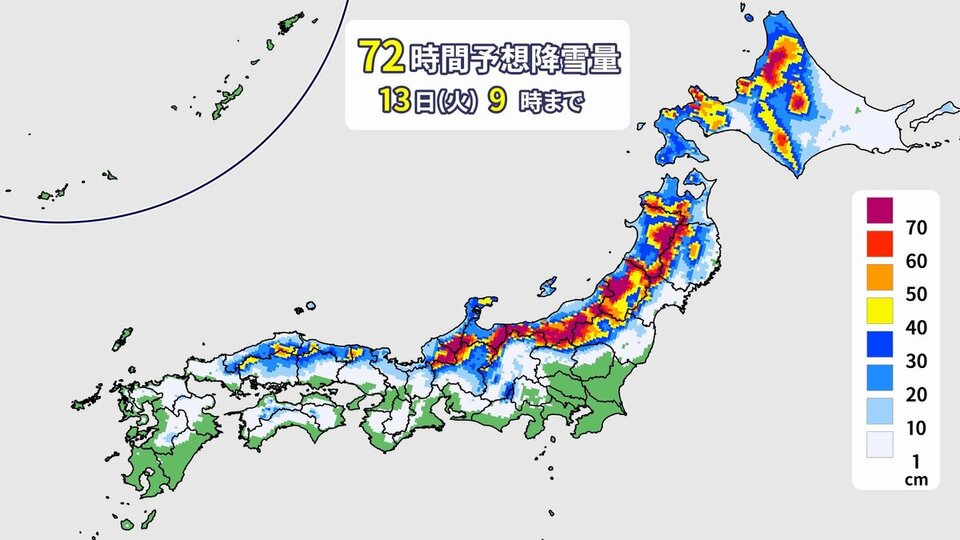 日本列島には平地で雪を降らせる寒気がすっぽり