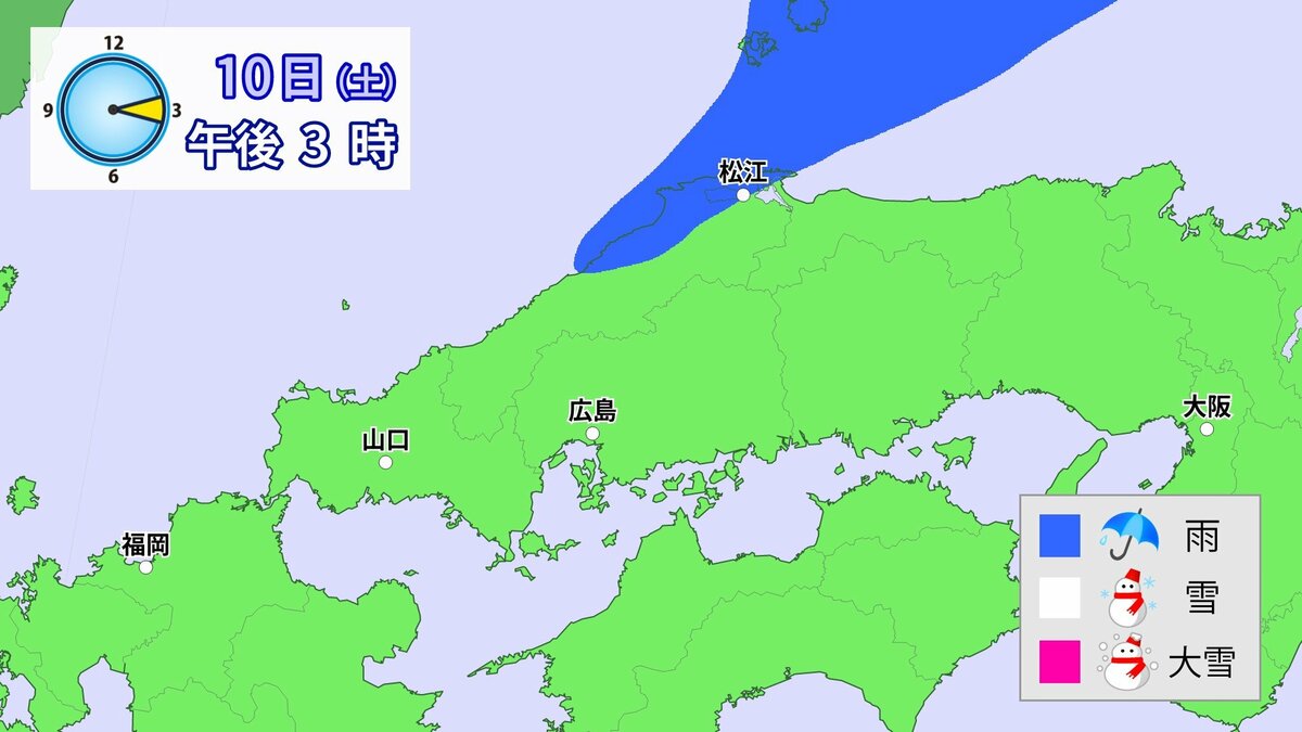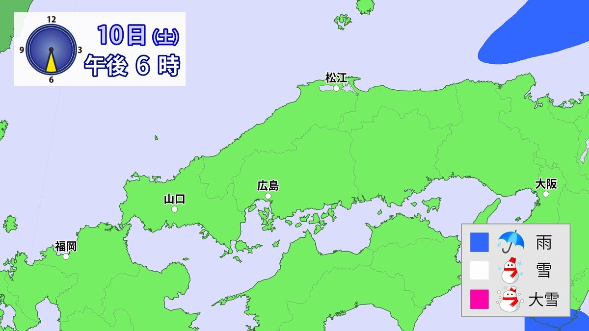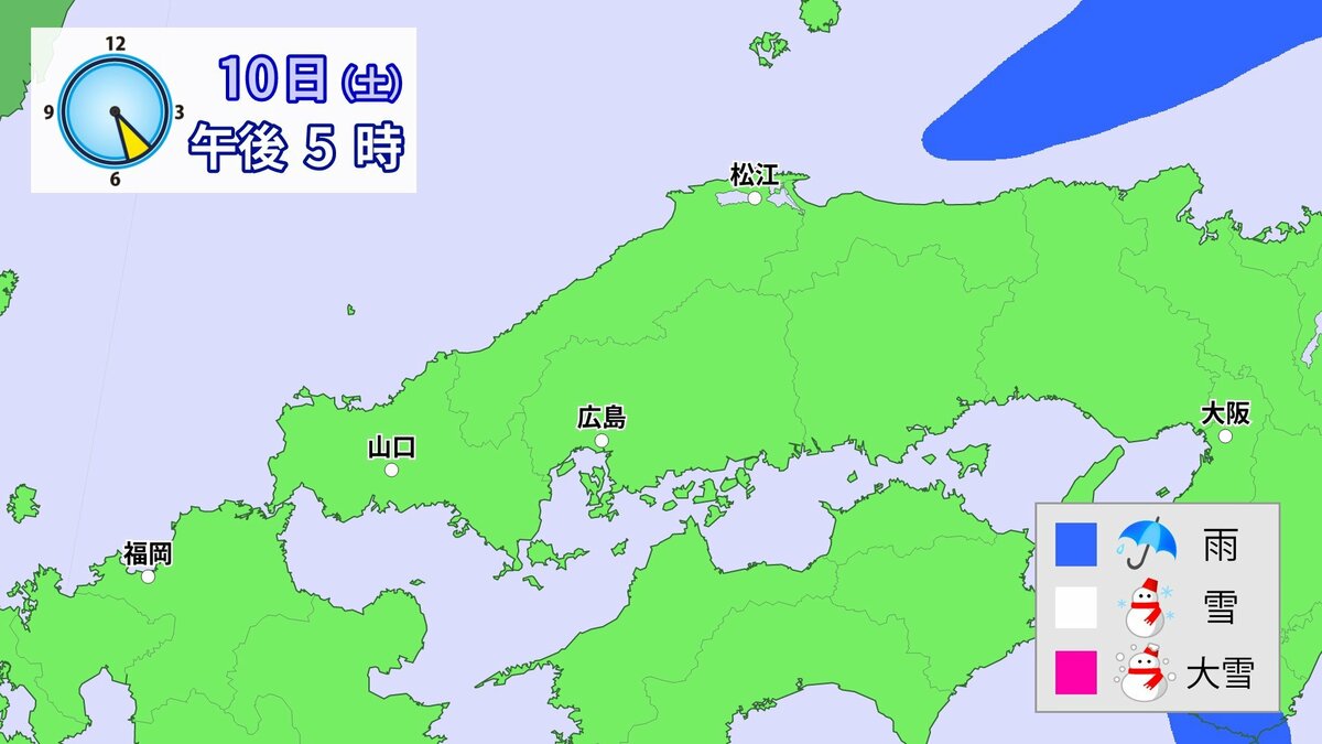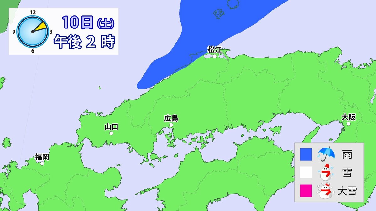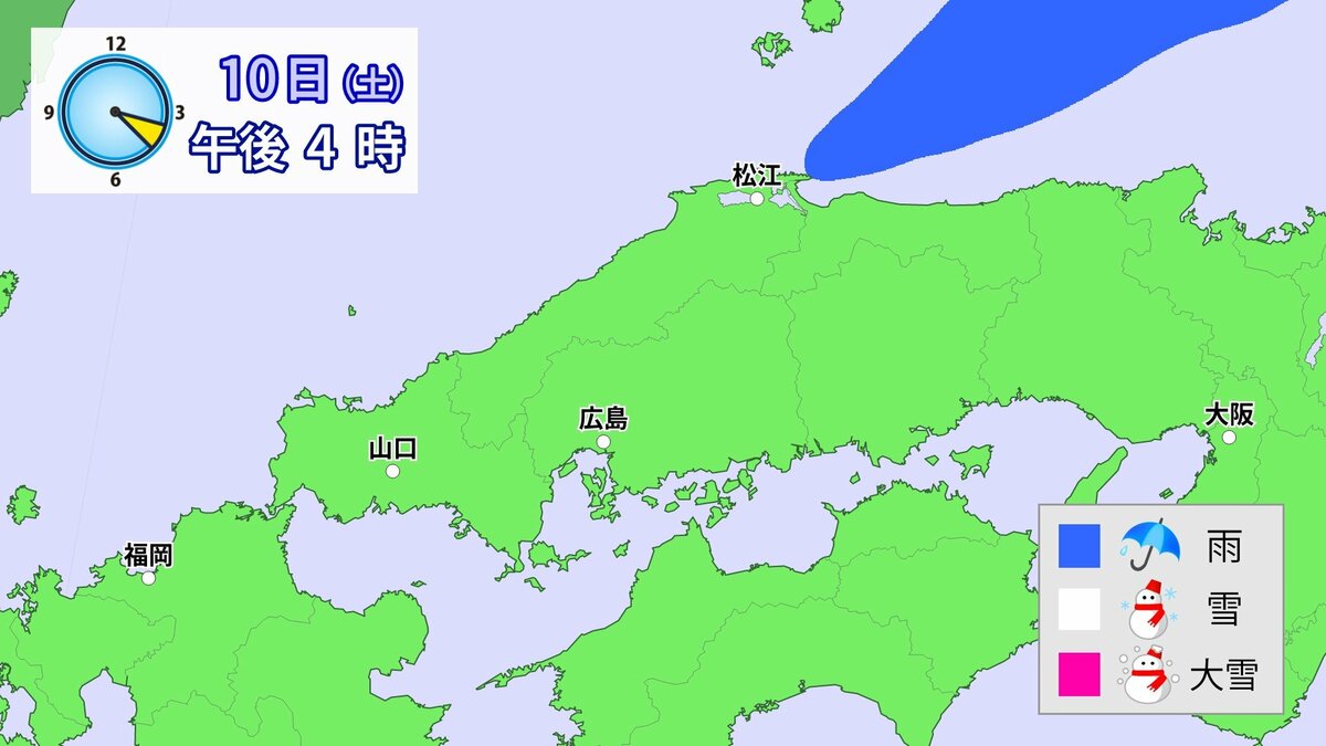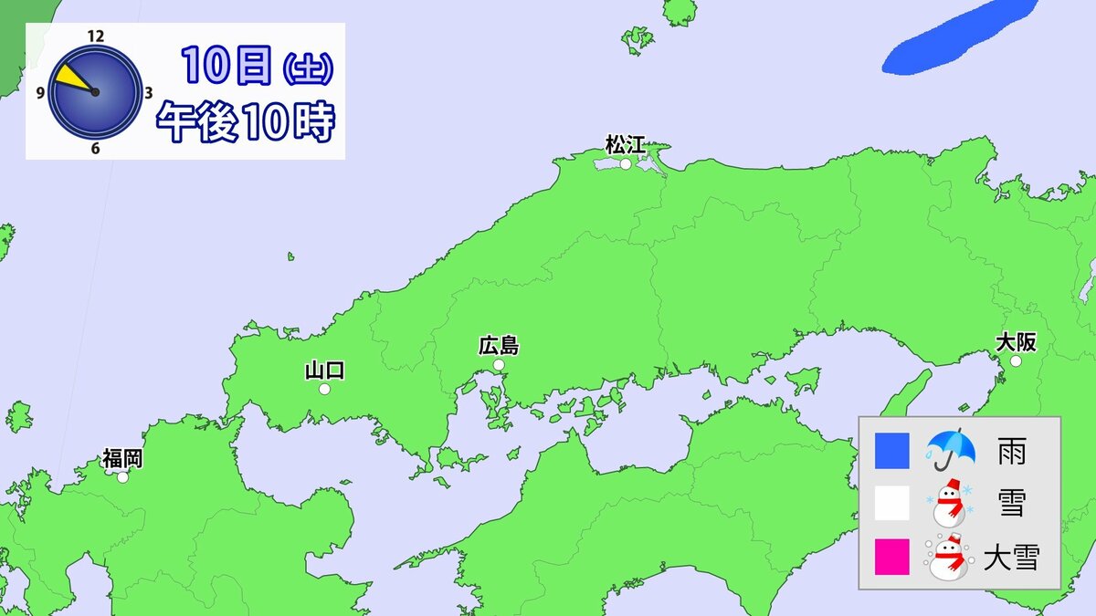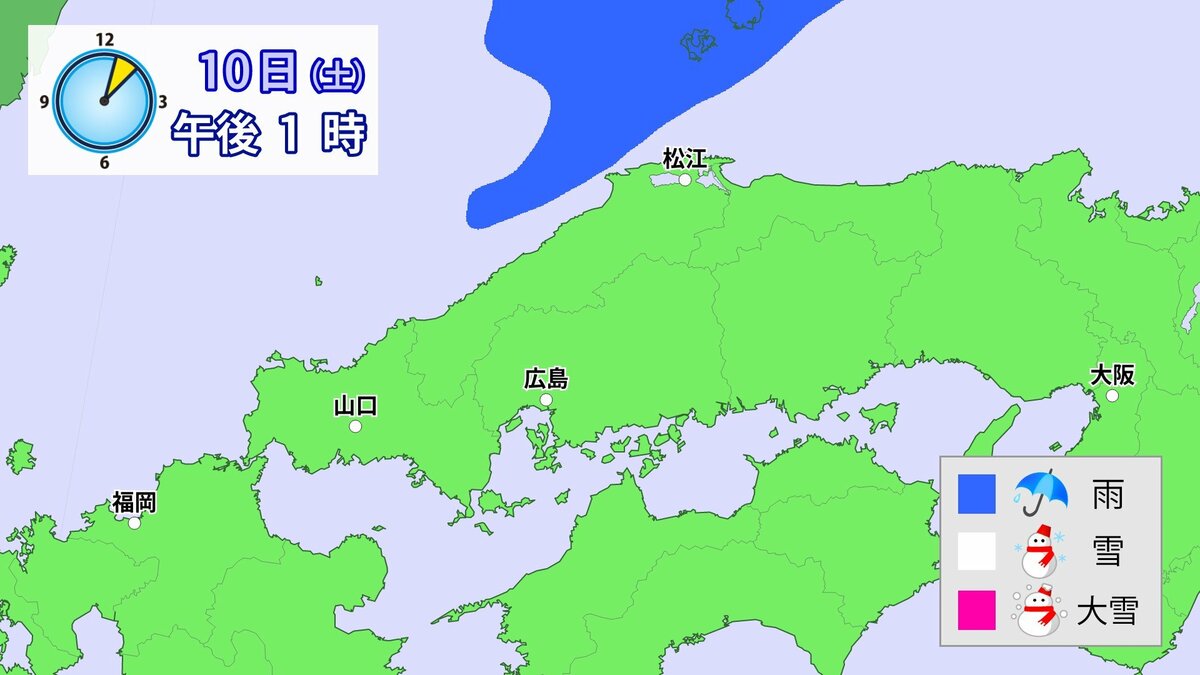 Uターンラッシュがはじまった2日、雪の影響で複数の車がスタックしたことで、広島・山口県境付近の山陽自動車道では、大規模渋滞が発生しました。次の3連休も、中国地方の雪が少ない地域で降る可能性があります。11日(日)から12日(月)午前中にかけての広島県は、広い範囲で雪が降る見込みです。雪道は、必ず冬用タイヤで走行するようにしてください。