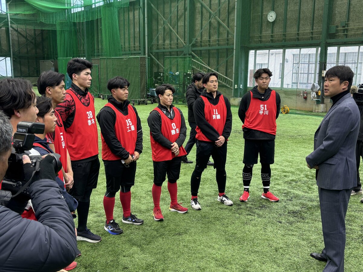 就任4年目を迎える指揮官は、ドラフト1位の平川蓮外野手(仙台大)をはじめとする新人たちの動きを鋭い視線で見守り、新戦力の台頭に期待を膨らませていました。