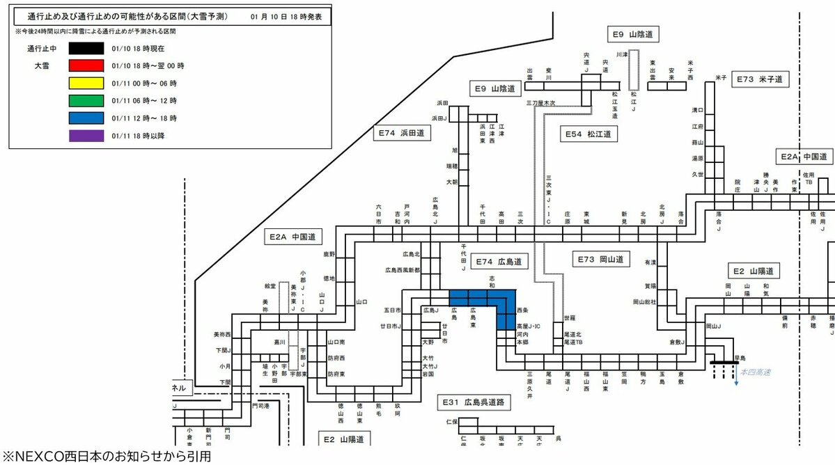 ・高屋JCT~広島IC 11日正午以降