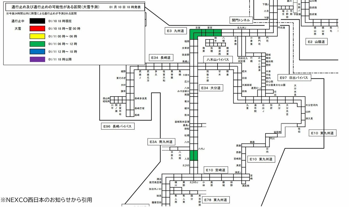 NEXCO西日本は、1月10日から12日にかけて、西日本の広範囲で降雪が予想されることから、高速道路の一部区間で「予防的通行止め」を実施する可能性があると発表しています。