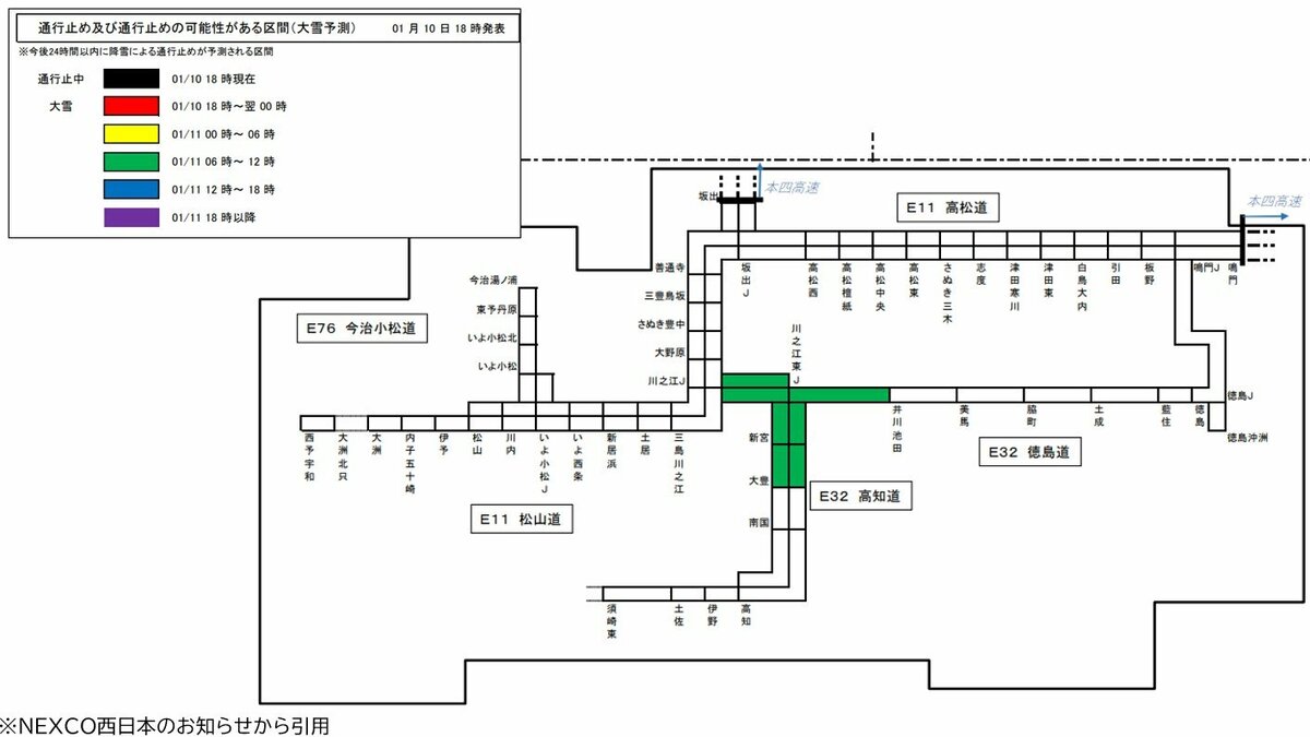 ・井川池田IC~川之江JCT 11日午前6時以降