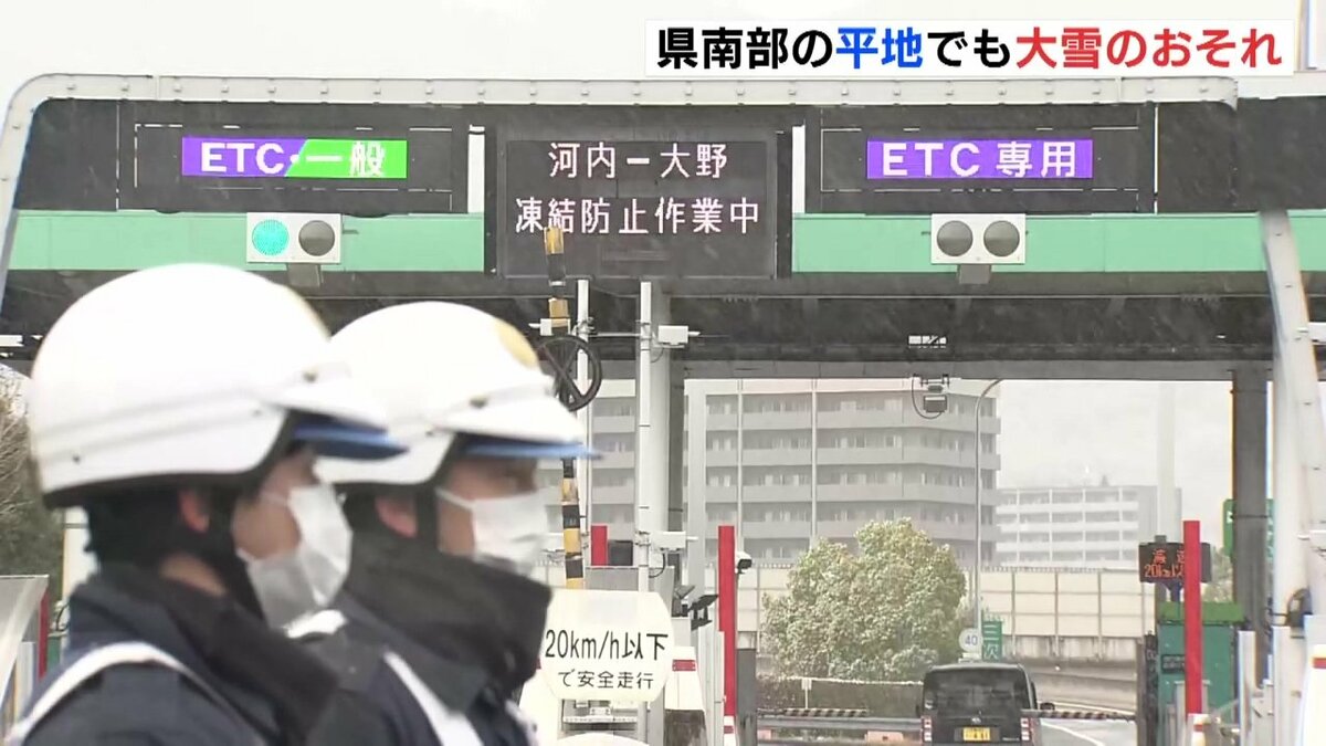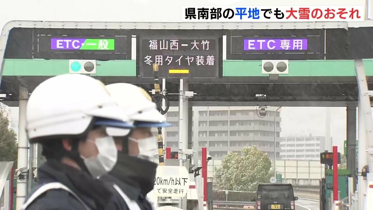 山陽道の広島ICでは、職員が1台ずつ冬用タイヤを装着しているか確認が行われています。
