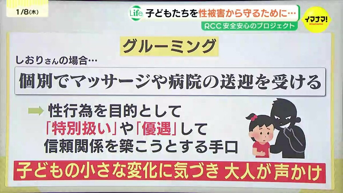 しおりさんが受けていた「グルーミング」は、近年相次ぐ学校現場での性被害でも大きな問題となっています。