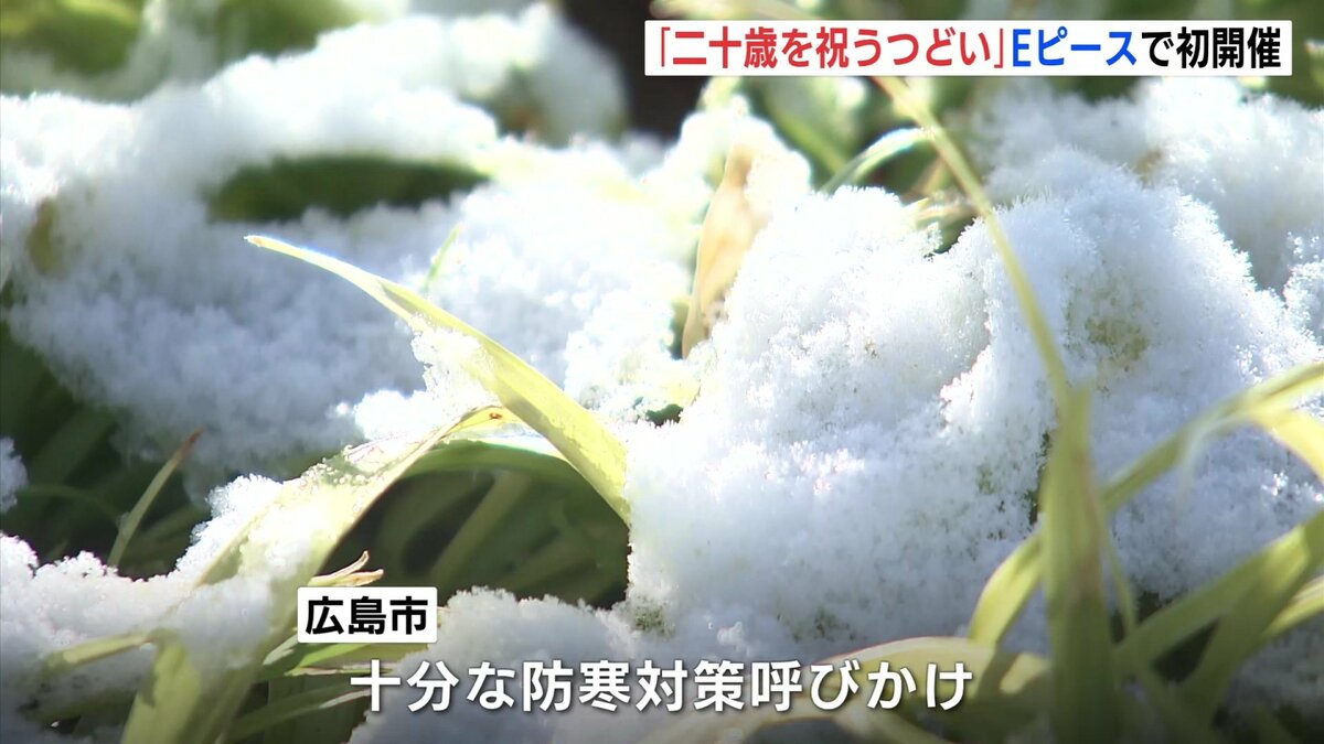 12日は広島市内も寒い一日となりました。会場近くの写真スタジオでは午前5時から、出席者がヘアメイクや着付けをしたあとで記念撮影をしていました。広島市では、屋外施設での開催となるため十分な防寒対策を呼びかけています。