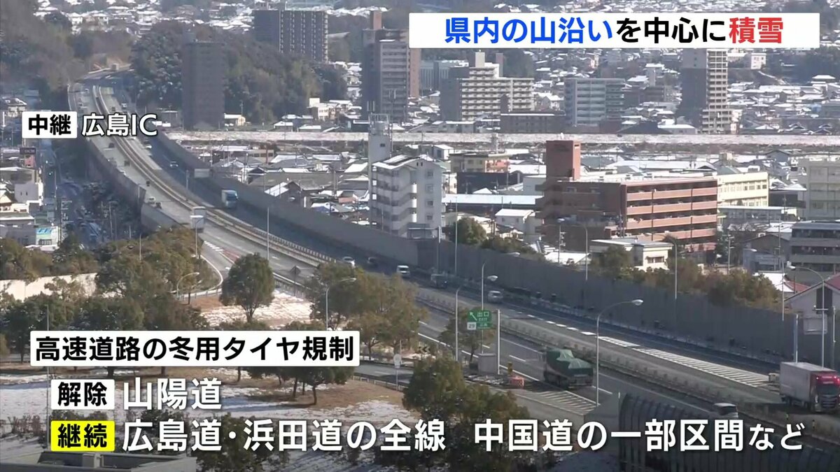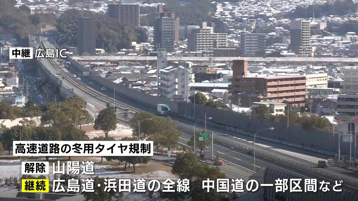 高速道路では、午前11時現在で冬用タイヤ規制は山陽道で解除されましたが、広島道・浜田道の全線、中国道の一部区間などでは継続されています。