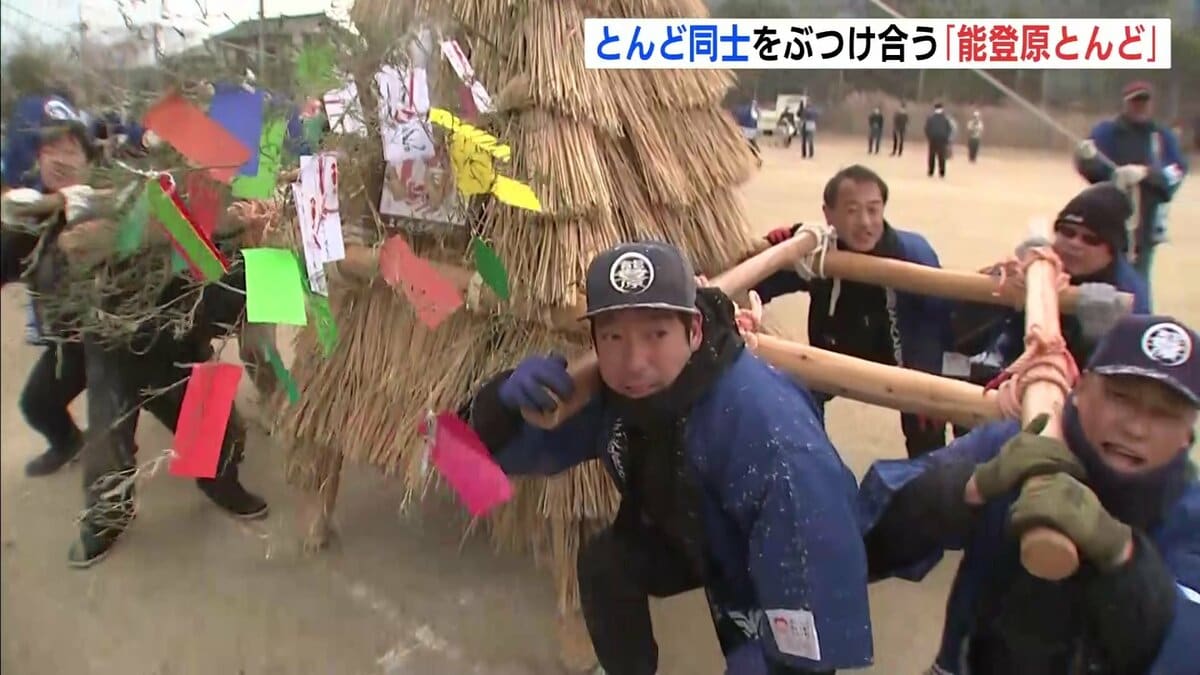 とんど同士をぶつけあう「能登原とんど」が11日、福山市で行われました。