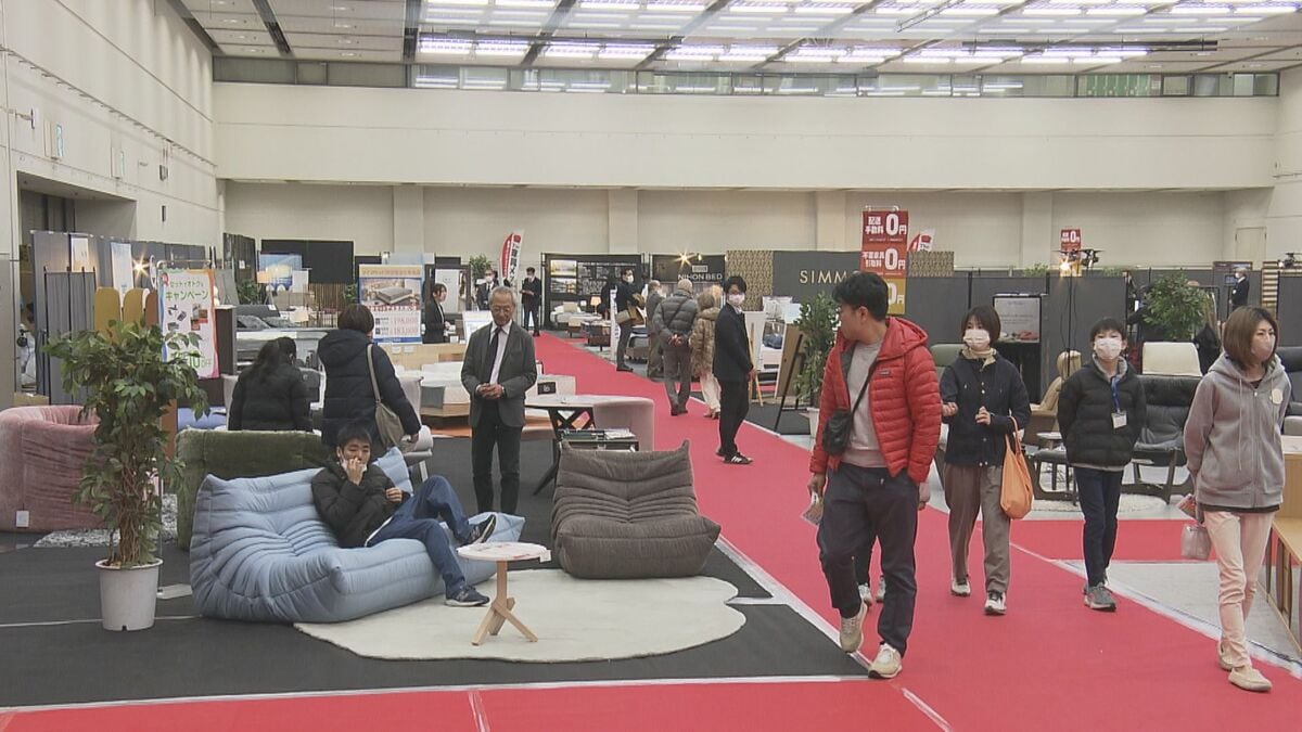 アウトレットコーナーでは最大8割引きで家具が販売されています。「THE家具メッセ広島」は、県立広島産業会館で12日まで開催されます。