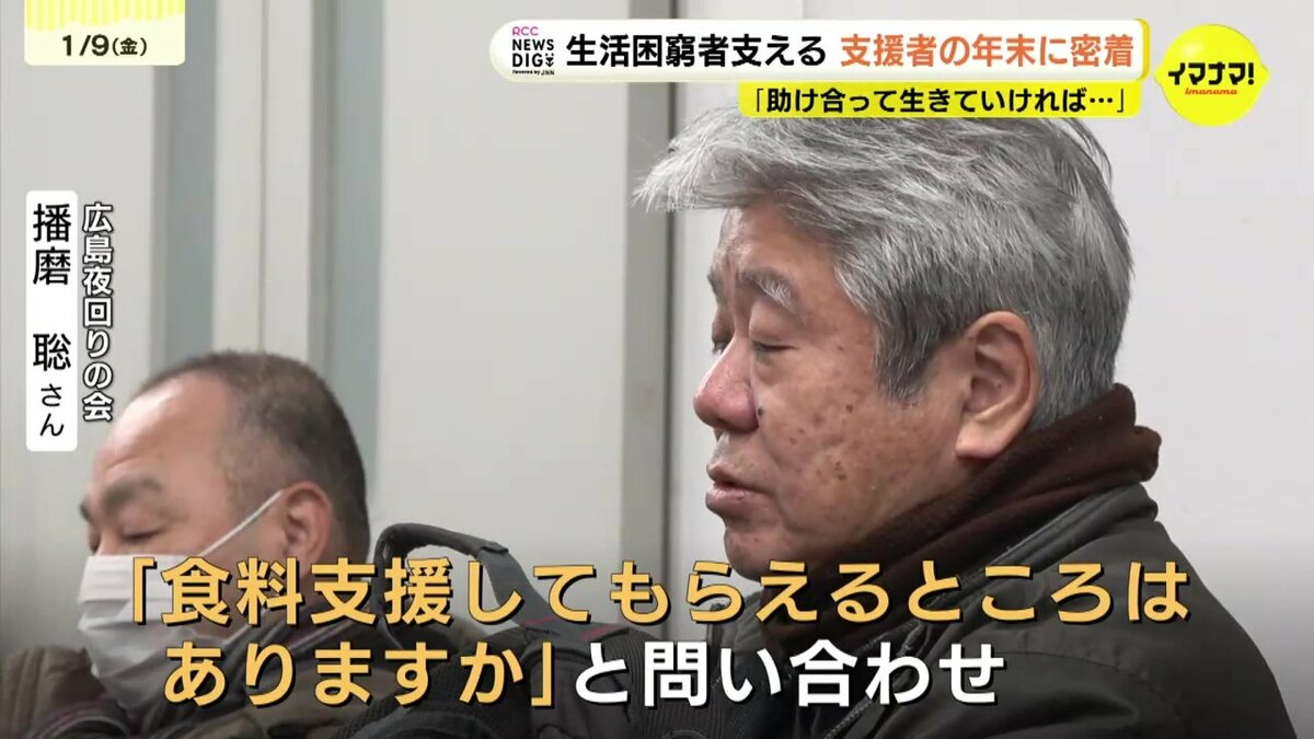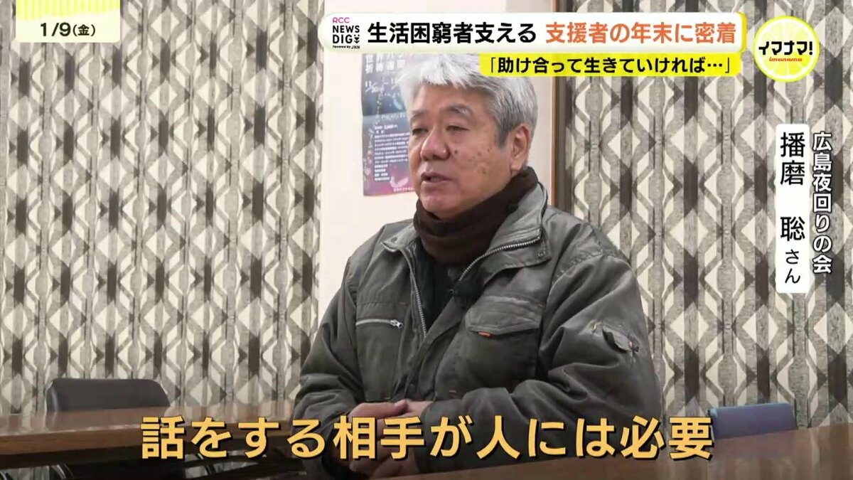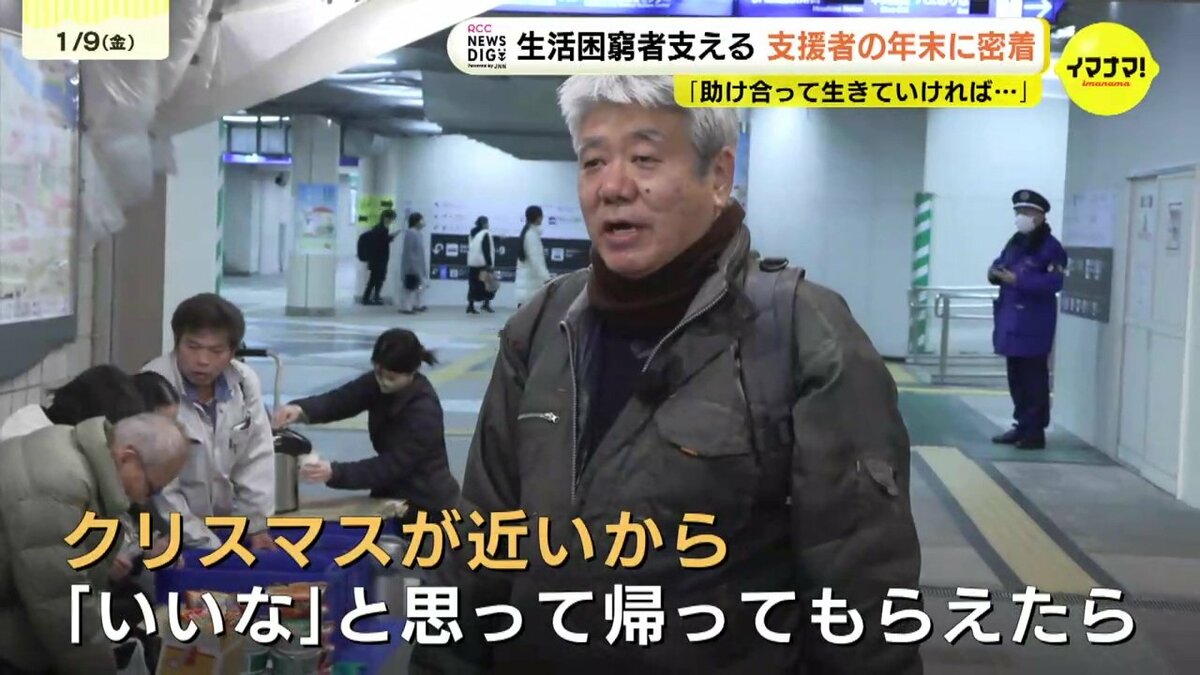 12月23日、広島駅の地下通路にはおよそ30人が集まりました。しかし、その中には路上生活者だけでなく、年金だけでは生活が成り立たず、こうしたボランティアの支援に頼りながら日々をつないでいると話す人もいました。