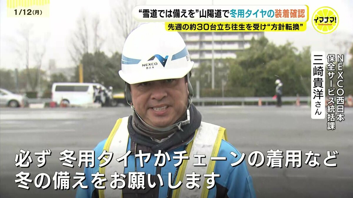 NEXCO西日本は、この立ち往生を受けて方針を転換。インターチェンジの入り口など各所で、県警高速隊と連携して冬用タイヤが装着しているか確認をすることにしました。