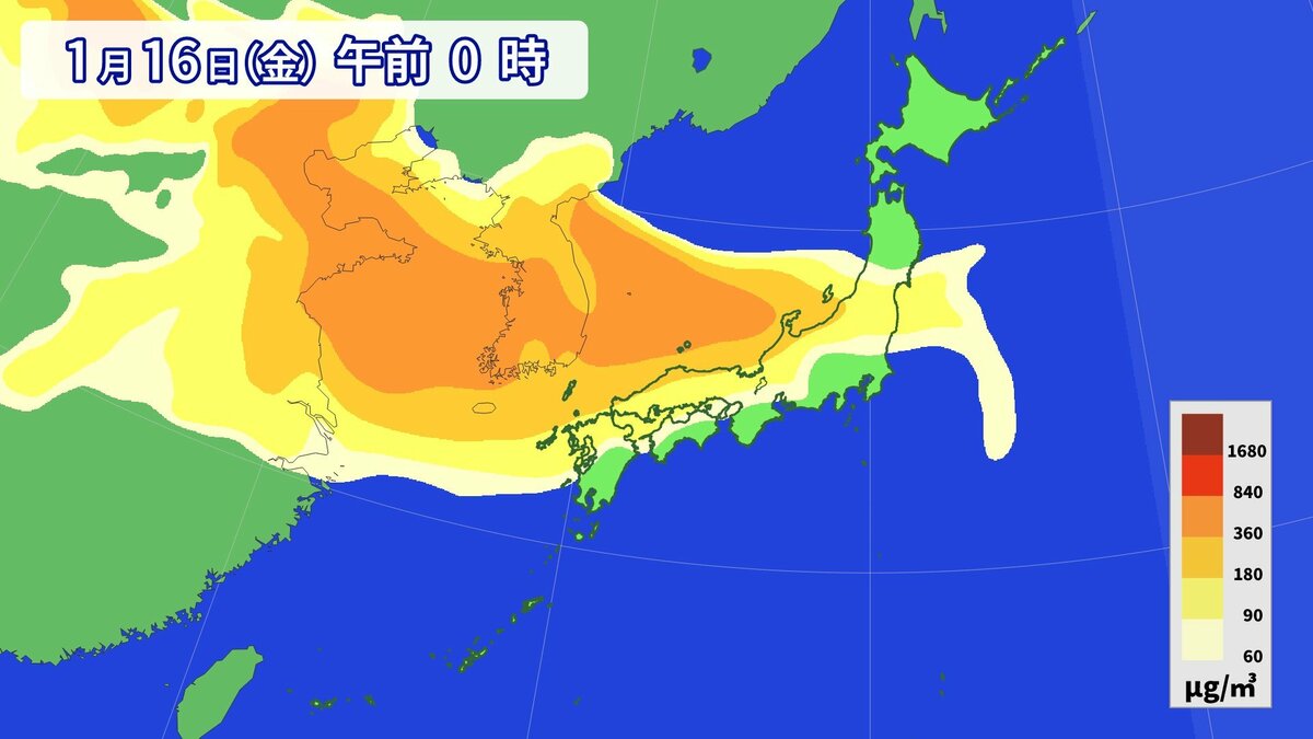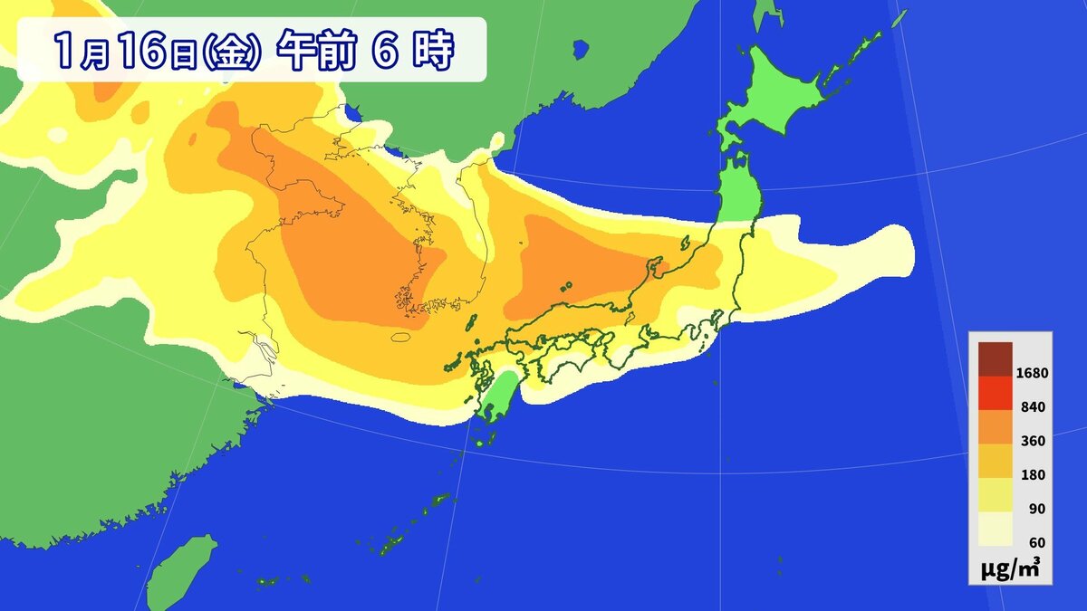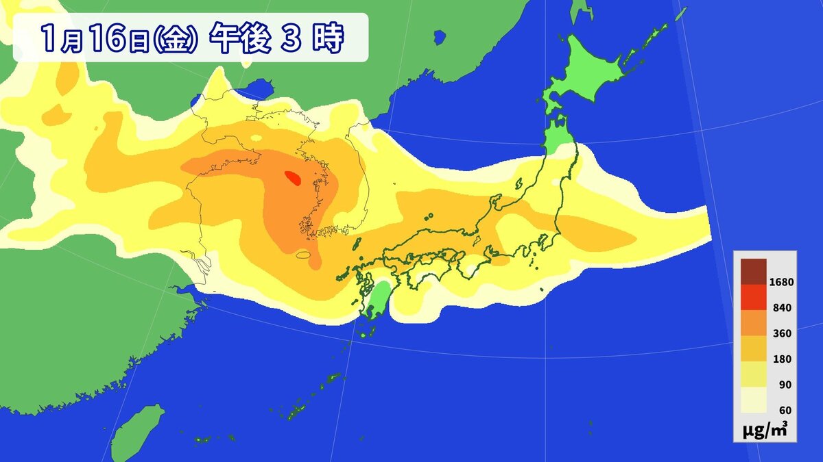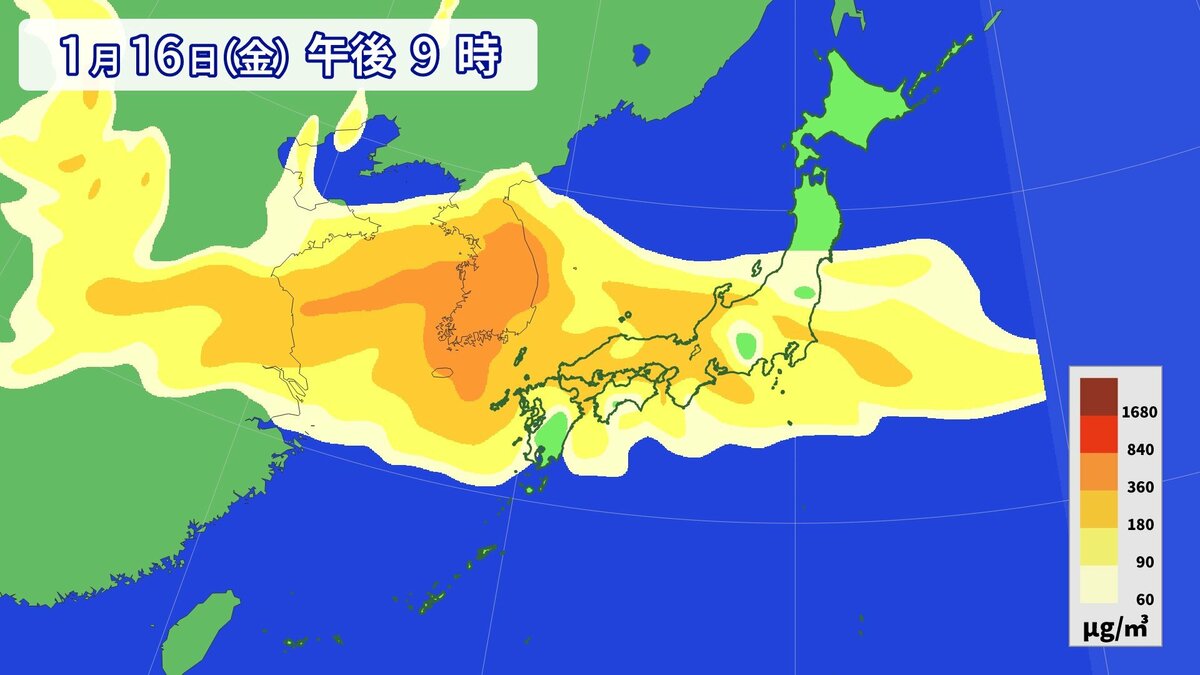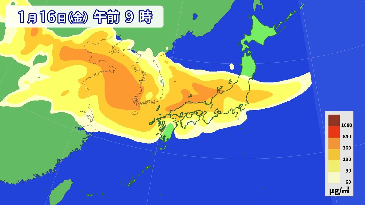 気象庁の黄砂解析予想図などによりますと、15、16日に全国の広い範囲で、濃い濃度の黄砂が予想されています。