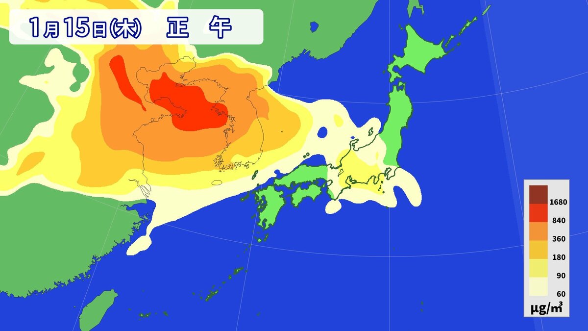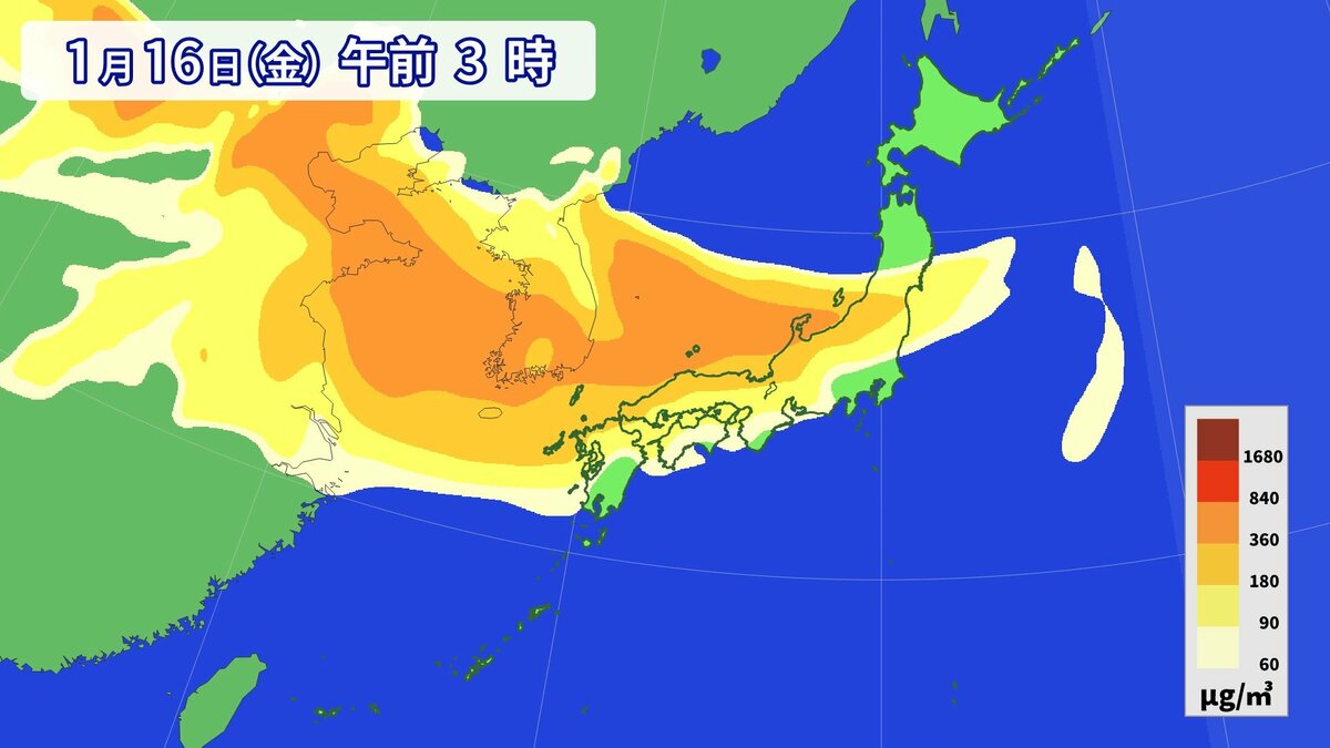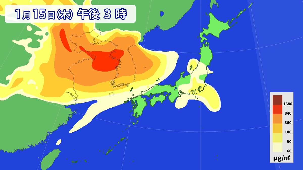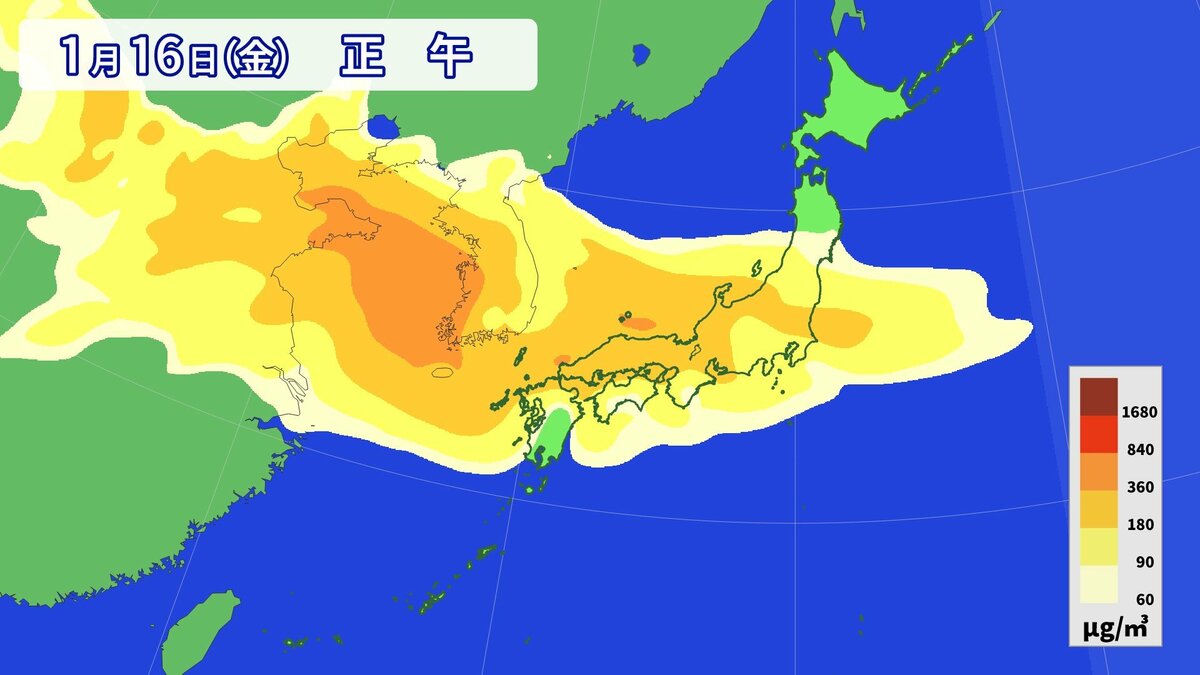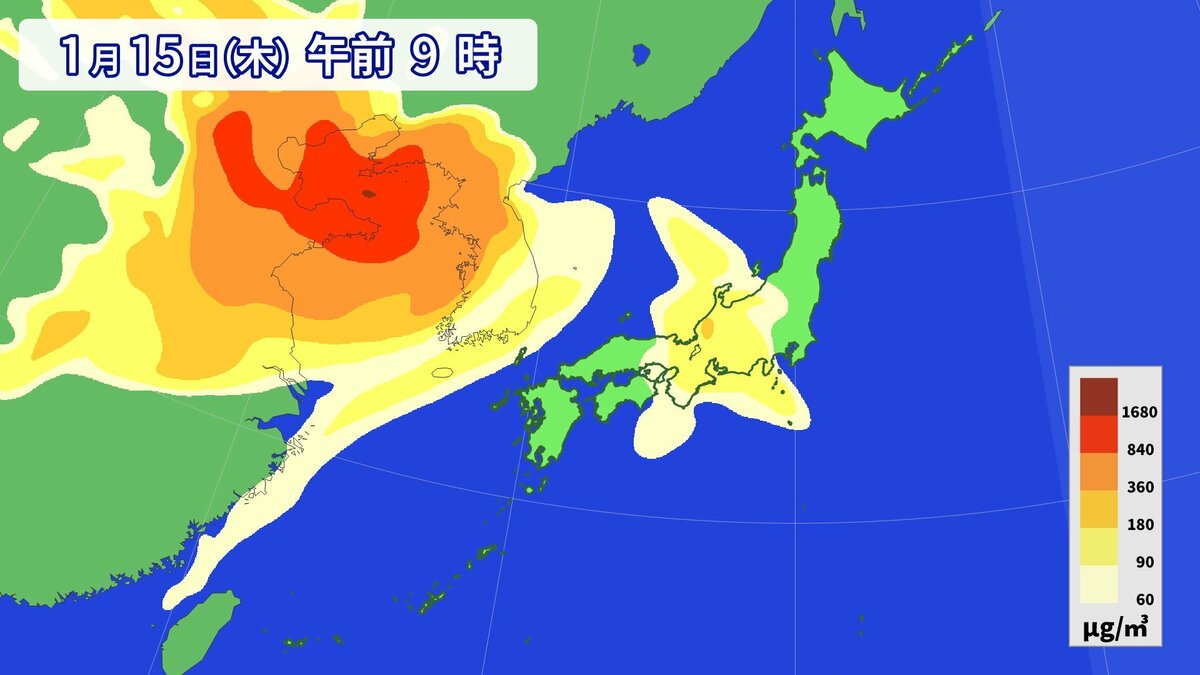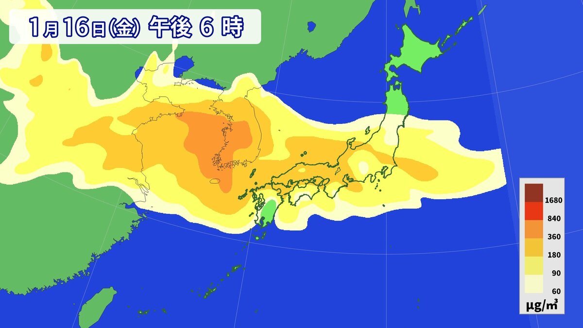 気象庁の黄砂解析予想図などによりますと、15、16日に全国の広い範囲で、濃い濃度の黄砂が予想されています。