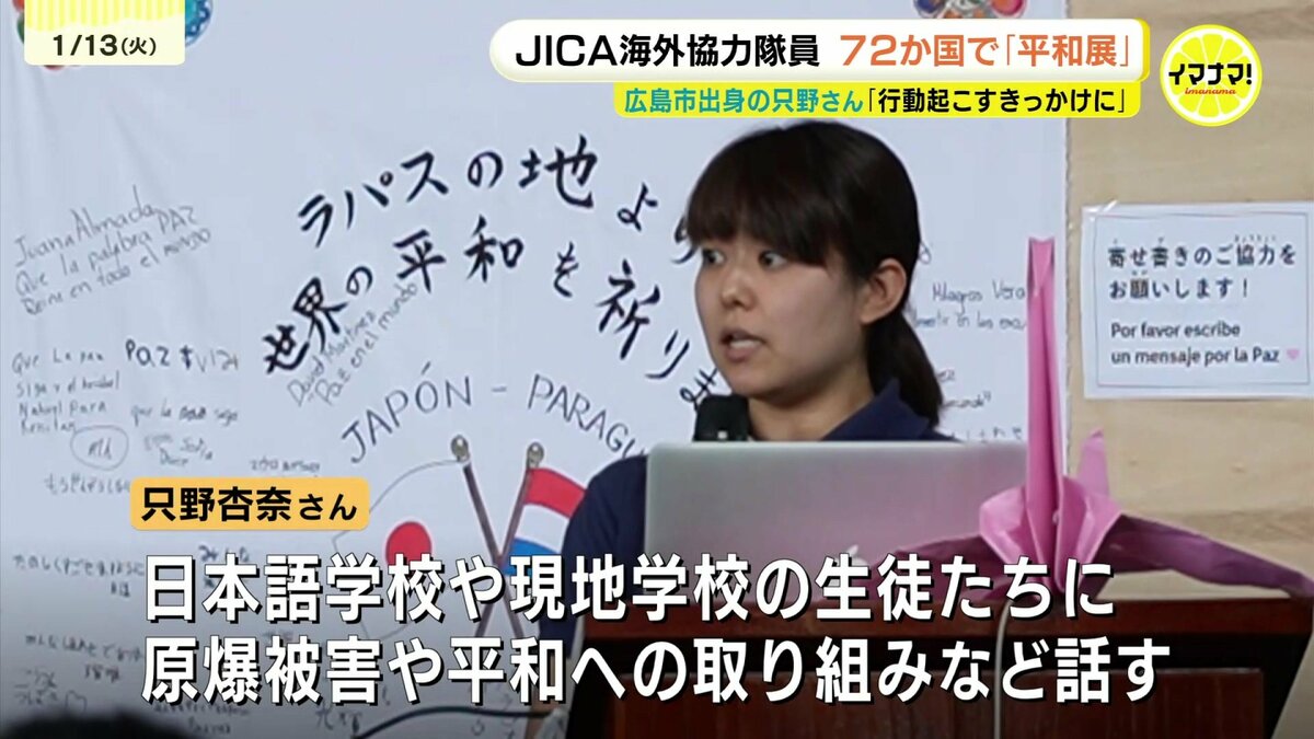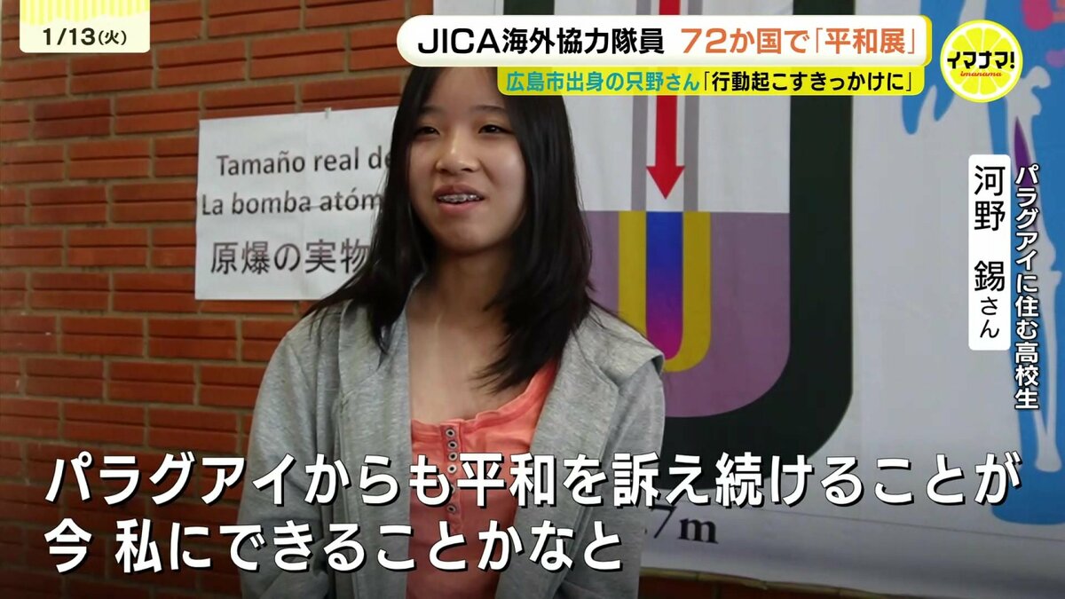 広島市出身の只野杏奈さんは、パラグアイの4つの町で平和展を開催しました。きっかけとなったのは、高校生の時に訪れた「原爆投下機の出撃地」テニアン島で聞いた語り部の話でした。