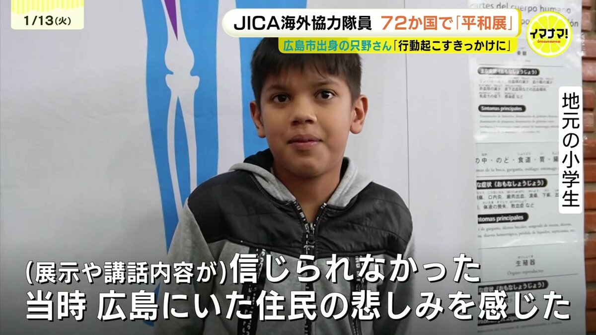 只野さんは2024年、パラグアイの4つの町で平和展を開きました。そのうちの1つ・ラパスは、戦後、福山市の沼隈町などから多くの人が移住した名残で、日系人も多く住んでいます。只野さんは、日本語学校や現地の学校の生徒たちに、原爆による被害や広島の平和への取り組みなどを話しました。