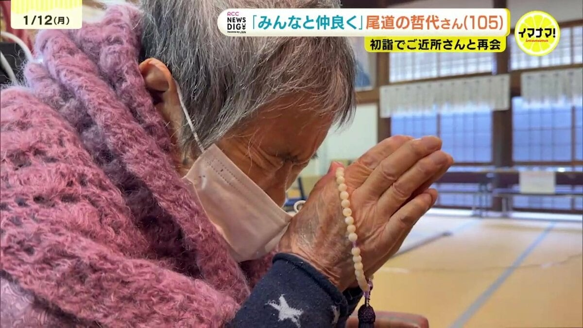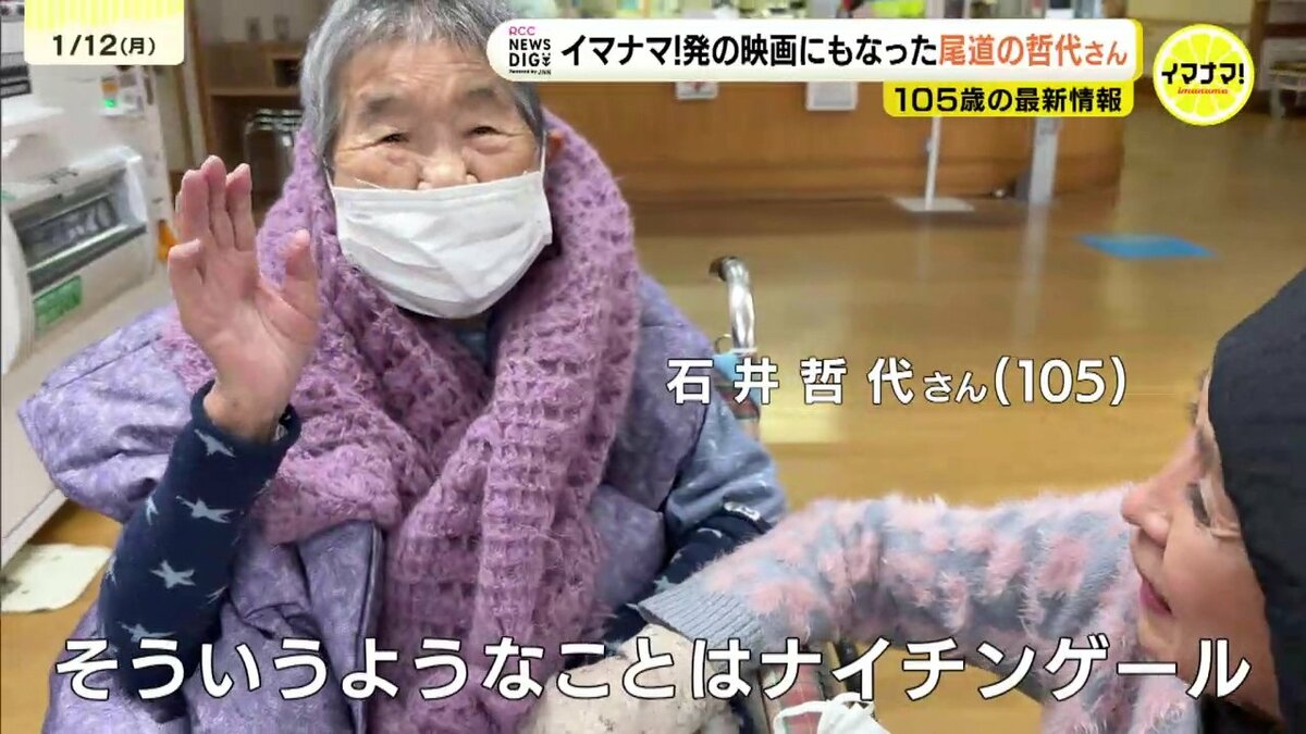 イマナマ!発のドキュメンタリー映画にもなった、尾道市の石井哲代さんの最新情報です! 哲代さんは、現在105歳。夫は20年以上前に亡くなられて、お子さんはおられず、長らく一人暮らしでした。今は施設に入居していますが、お達者ぶりは健在です! 今月4日の初詣の様子を取材しました。