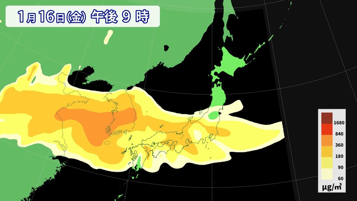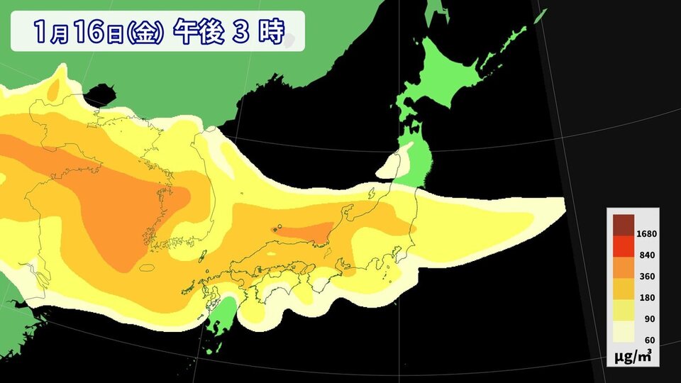SPRINTARSによると20日頃にかけて日本列島でPM2.5もやや多い、多いところがある予想です。目・鼻・皮膚などにアレルギーがある人や喘息など呼吸器に疾患がある人は体調管理に十分注意してください。また、2月になると、だんだんと花粉飛来のシーズンも始まります。早めの対策をしてお過ごしください。