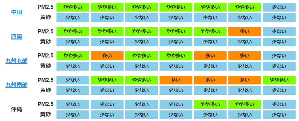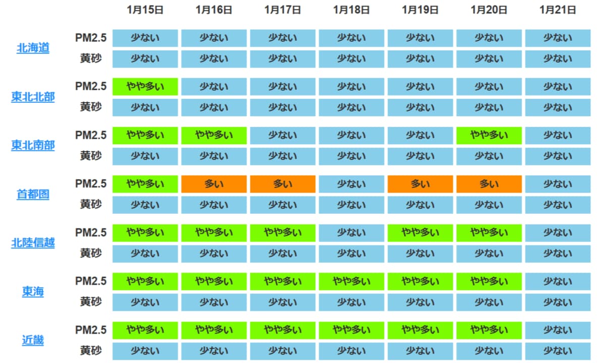 来週にかけてPM2.5も