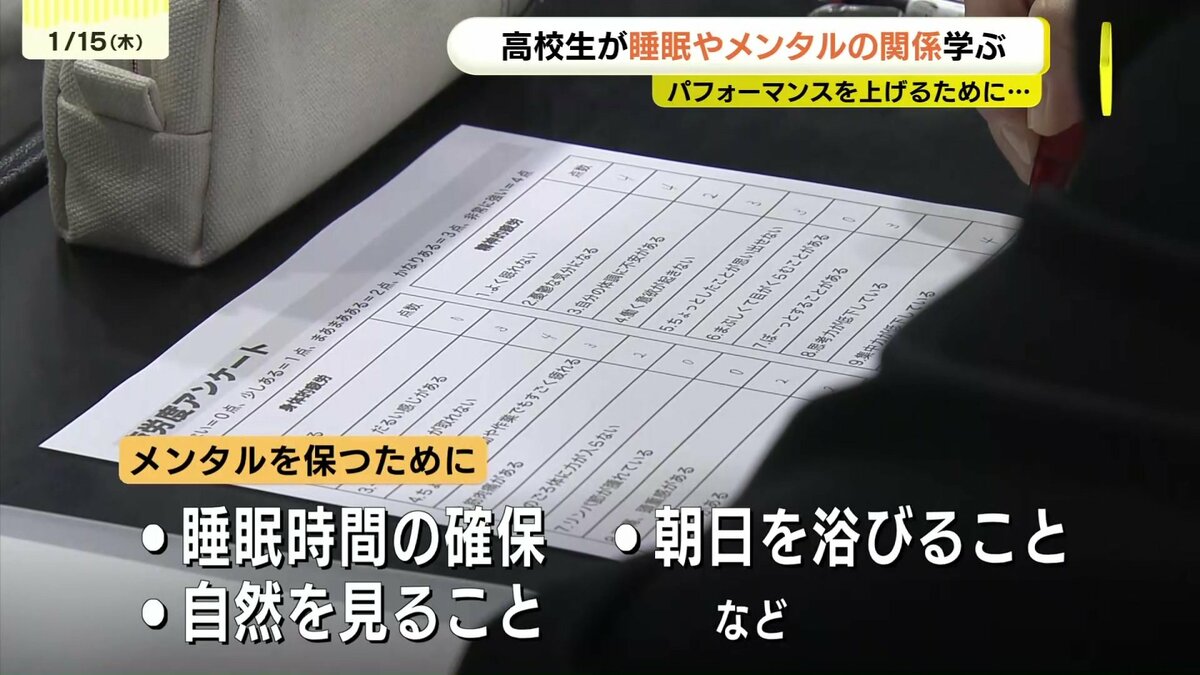 広島市の高校で、パフォーマンスを上げるための授業が行われています。今回、生徒たちが学んだのは、睡眠などとメンタルの関係でした。