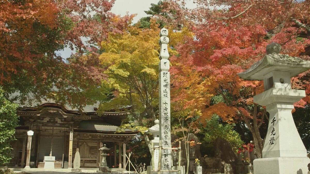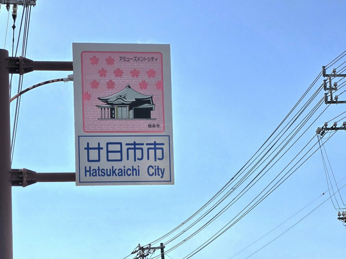 看板にデザインされている廿日市市の名所は・・・世界遺産「厳島神社」・・・と思いきや**「極楽寺」**。瀬戸内海国立公園内にある標高693mの極楽寺山の頂上付近にあり1200年以上の歴史を誇る寺です。