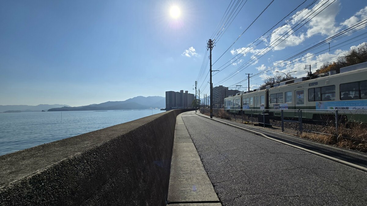 ただ迂回路は海と路面電車に挟まれる映えスポットの一つ。