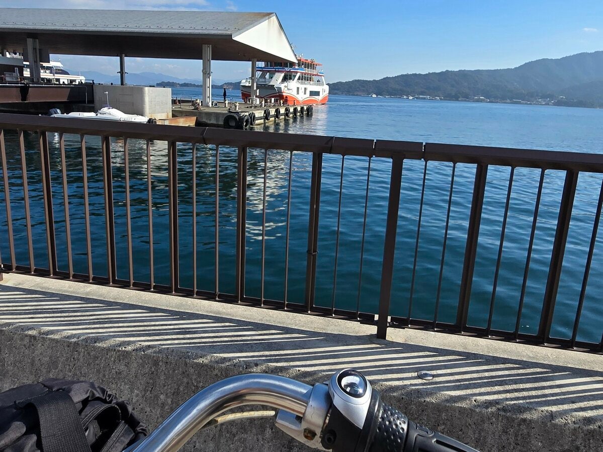 フェリー乗り場まで足を伸ばすと、厳島神社の鳥居も対岸に見ることができます。
