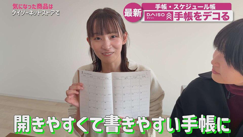 新本アナは、開きやすい手帳に2月のスケジュールを書いていきます。