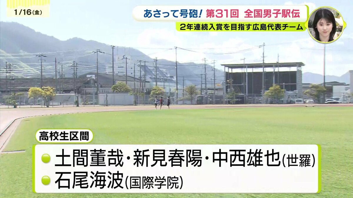 高校生区間では全国高校駅伝22年連続出場の世羅高校から3人、去年、全国高校駅伝に11年ぶりに出場した広島国際学院高校から1人を登録しました。