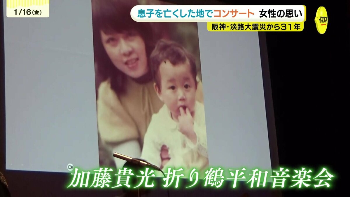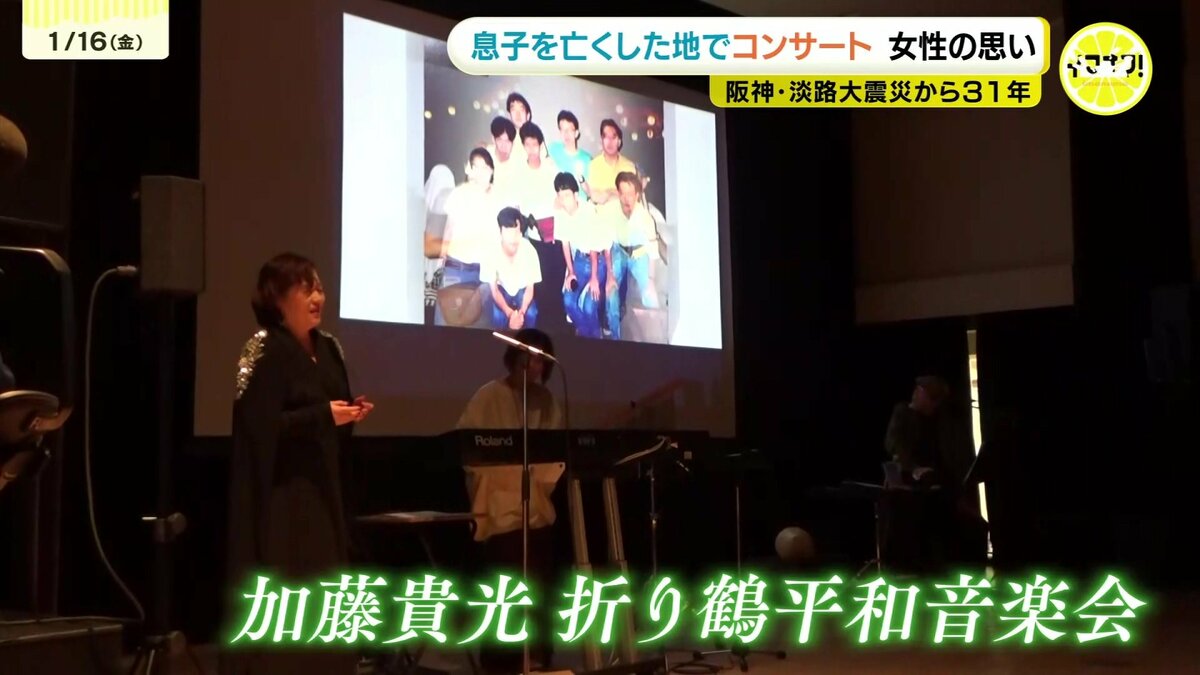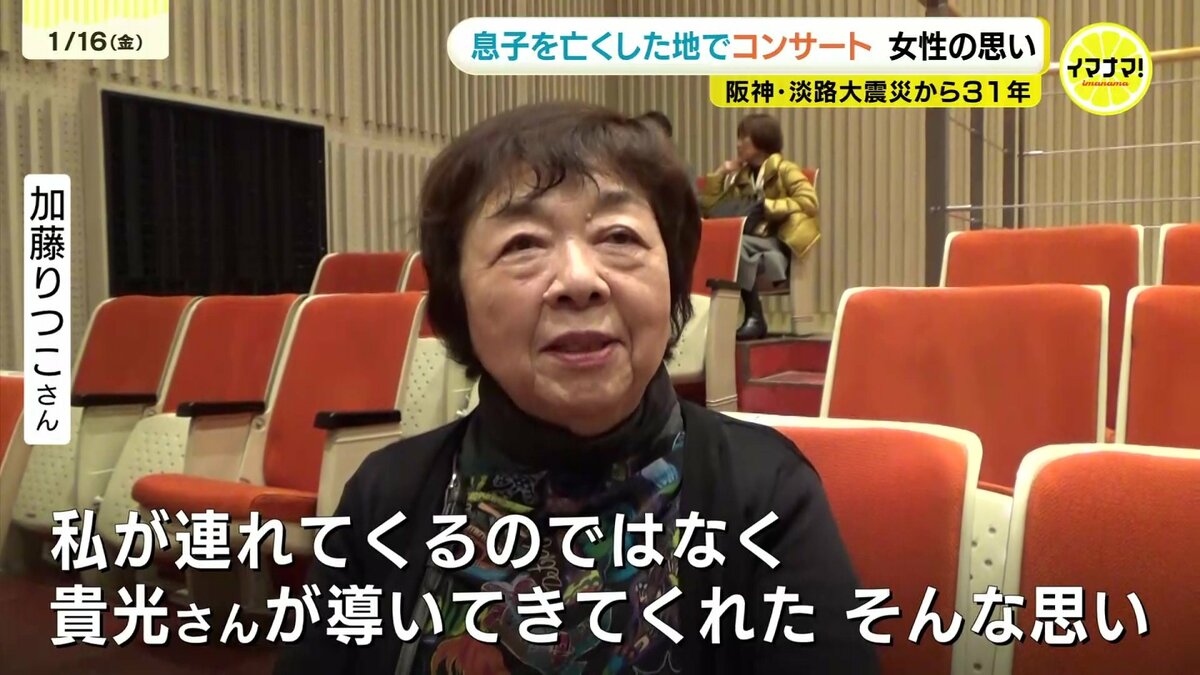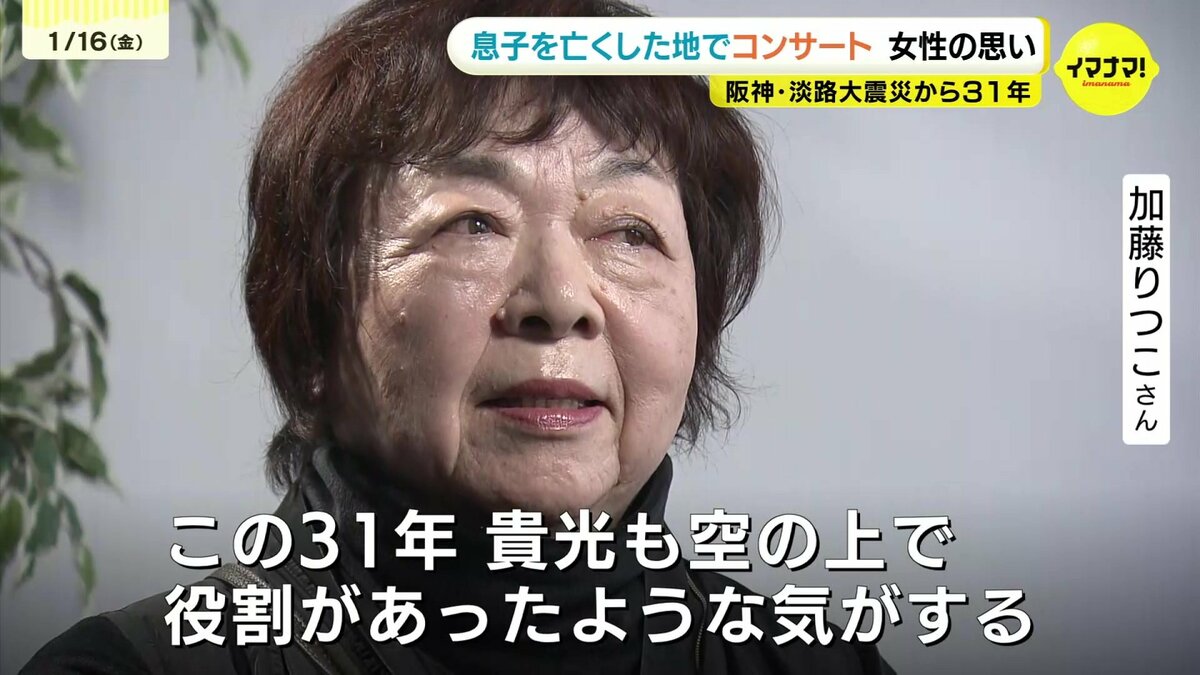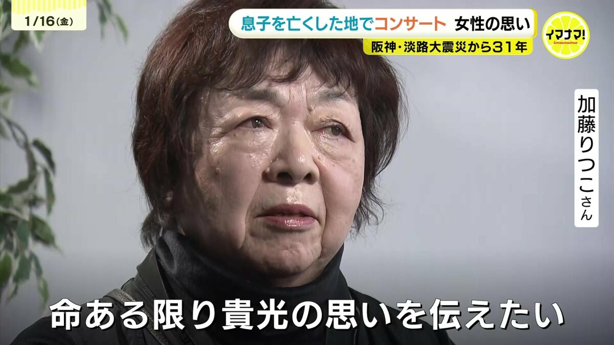 6000人を超える人々の命が奪われた阪神・淡路大震災の発生から31年が経ちました。広島市に住む加藤りつこさん(77)が、震災で亡くした息子・貴光さん(当時21)への思いを込めてコンサートを開きました。