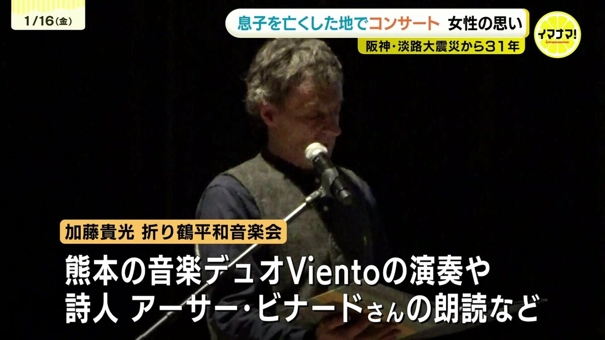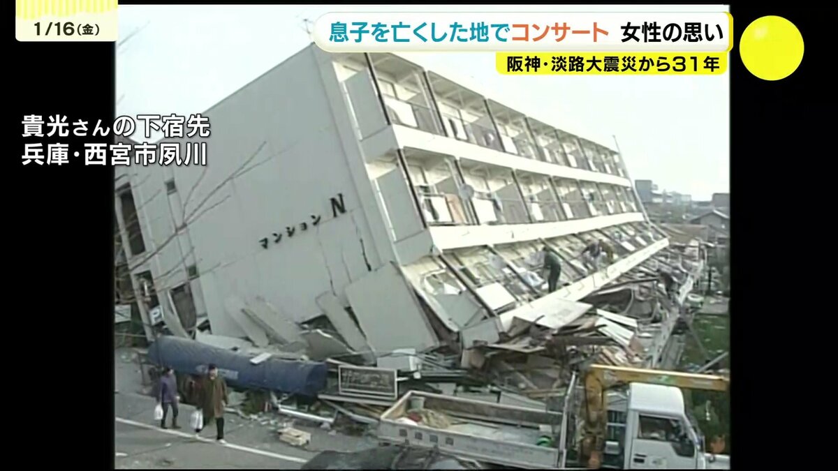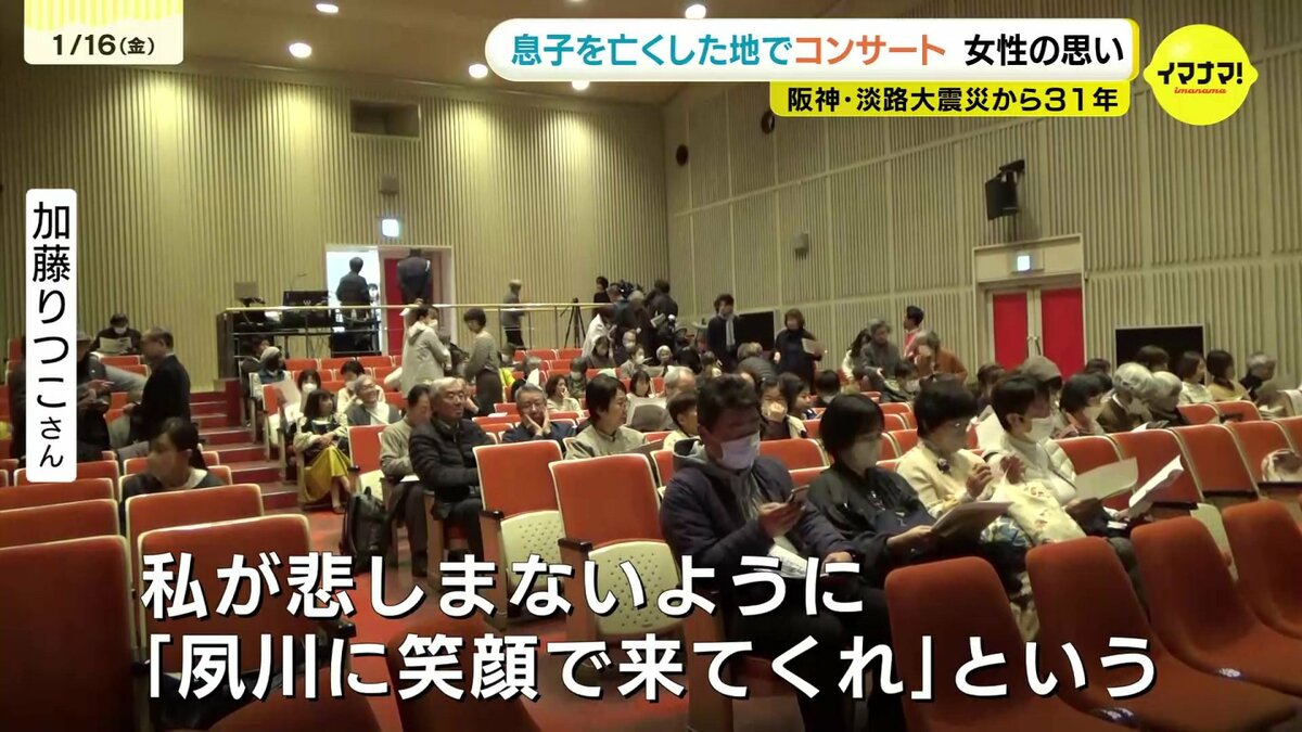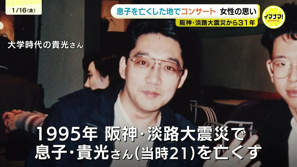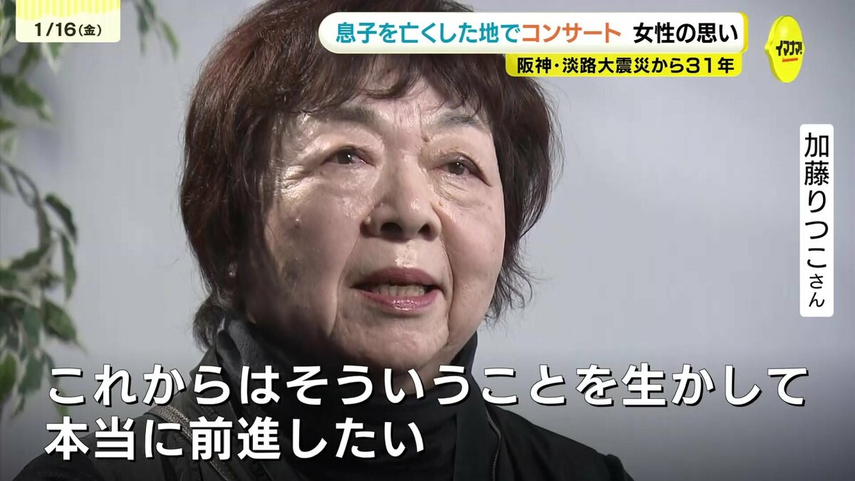 6000人を超える人々の命が奪われた阪神・淡路大震災の発生から31年が経ちました。広島市に住む加藤りつこさん(77)が、震災で亡くした息子・貴光さん(当時21)への思いを込めてコンサートを開きました。