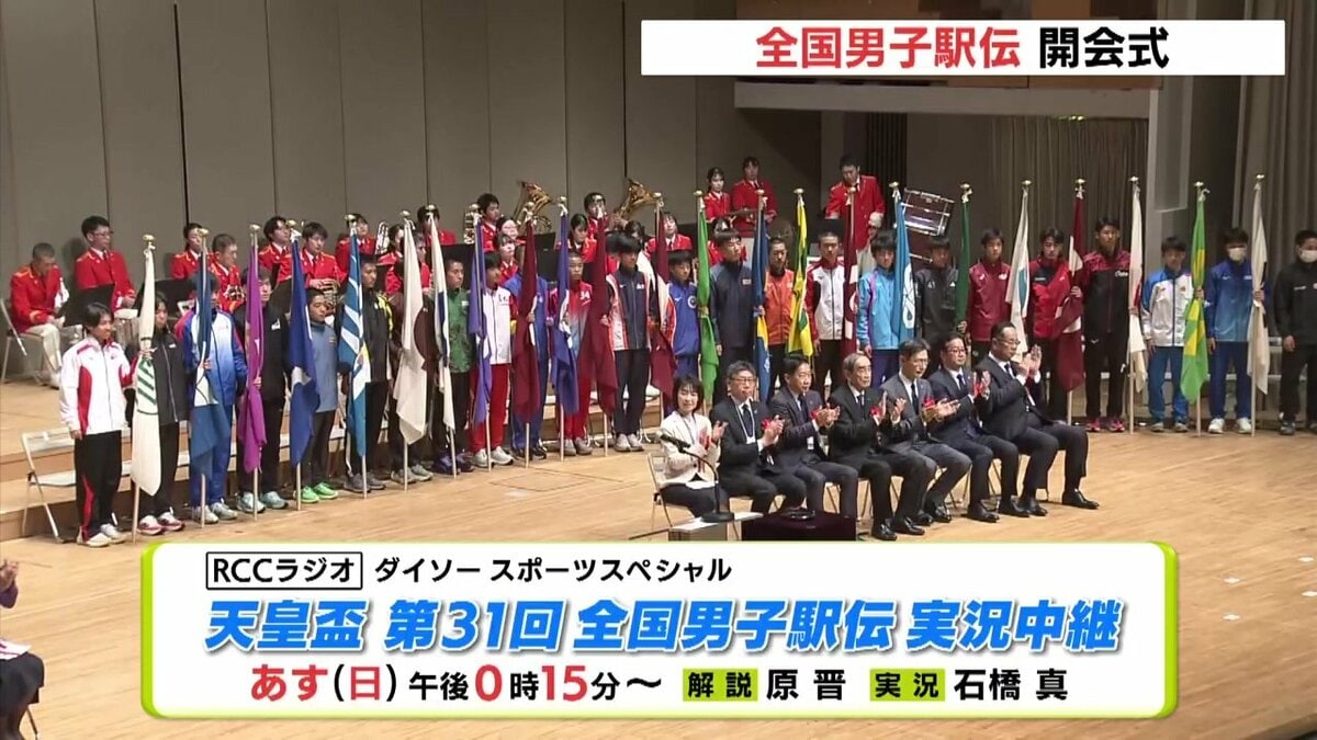 18日に号砲を迎える全国男子駅伝。前日に広島市で開催された開会式では、全国から集まったトップランナーたちが健闘を誓いました。