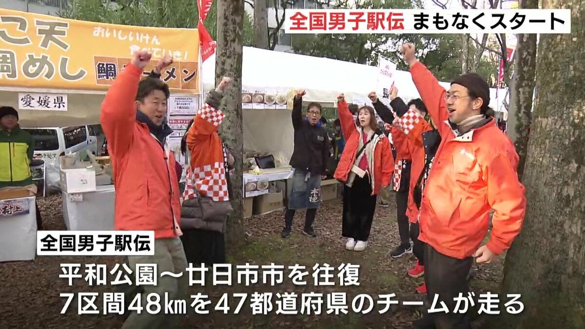 全国男子駅伝は、広島市の平和公園から廿日市市までを往復する7区間48kmを47都道府県のチームが走ります。