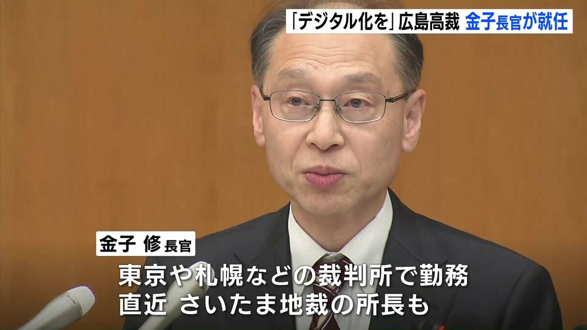 去年12月11日付で広島高裁の長官に就任したのは、千葉県出身の金子修長官(63)です。これまで東京や札幌などの裁判所で勤務し、直近では、さいたま地裁の所長を務めていました。
