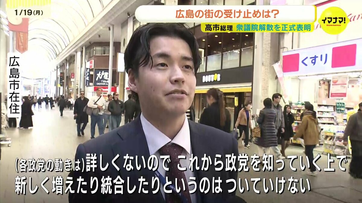 衆議院を解散する意向を正式に表明した高市総理。通常国会を前に、この10日ほど、選挙に向けて各政党の激しい動きが続きました。広島ではどのように受け止められたのでしょうか?