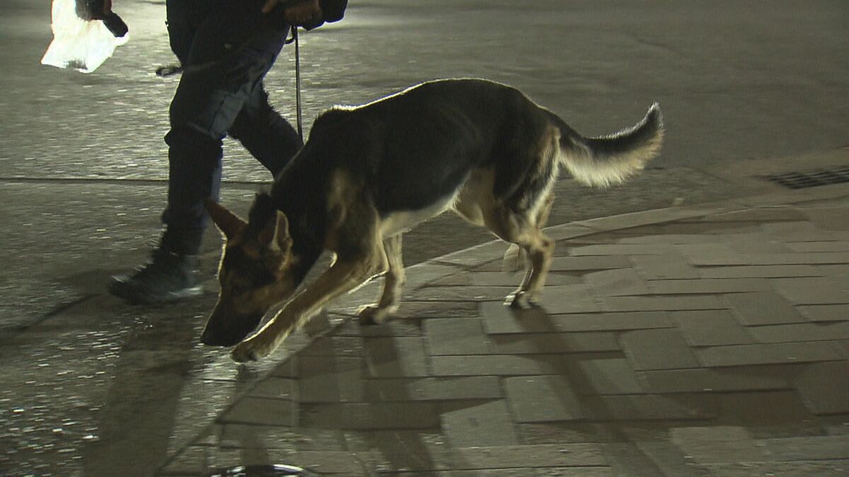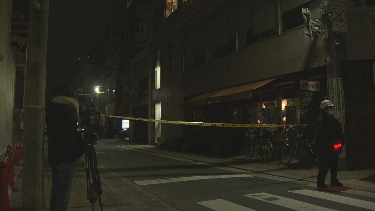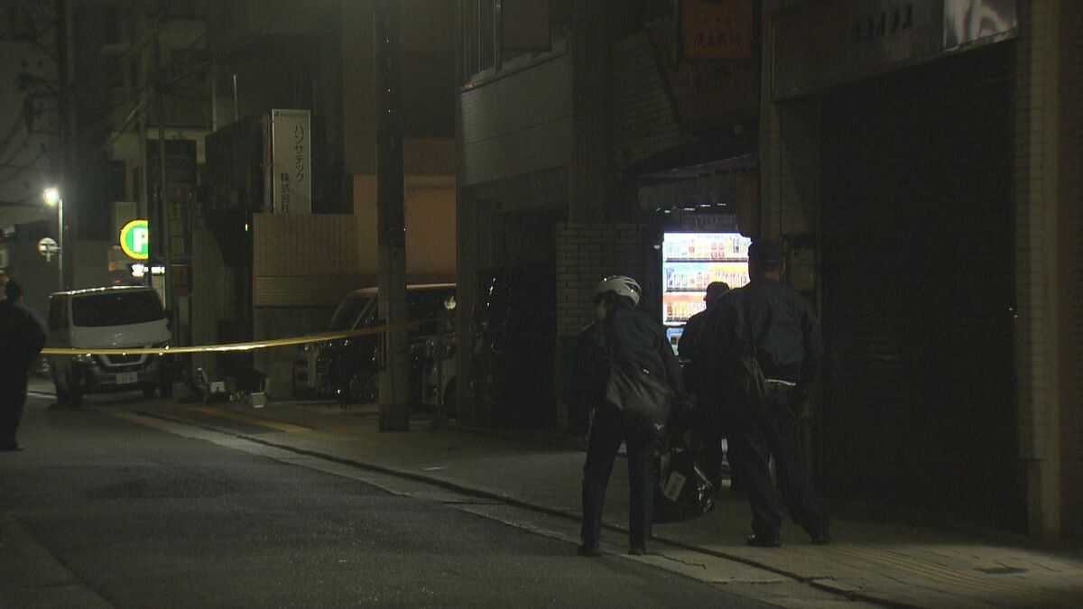 警察官が駆けつけたところ、現場近くの店舗に、けがをした成人男性がいたということです。別の飲食店の関係者は、「突然パトカーがたくさん来た。何かあったのかと思ったら救急車もきた。男性は頭にガーゼを当てて、けがをしている様子だった」と話しています。男性は、その後、市内の病院に搬送されましたが、命に別状はないということです。