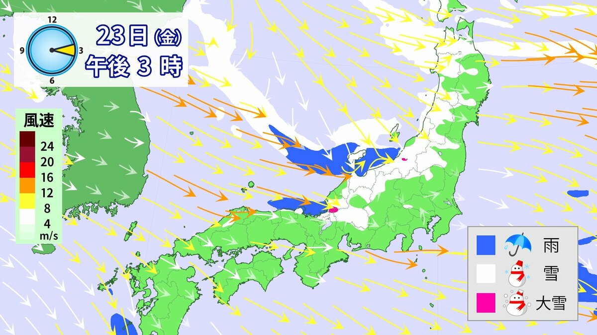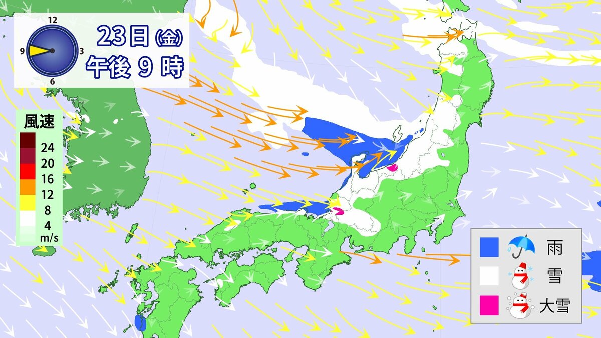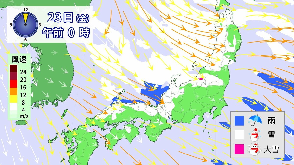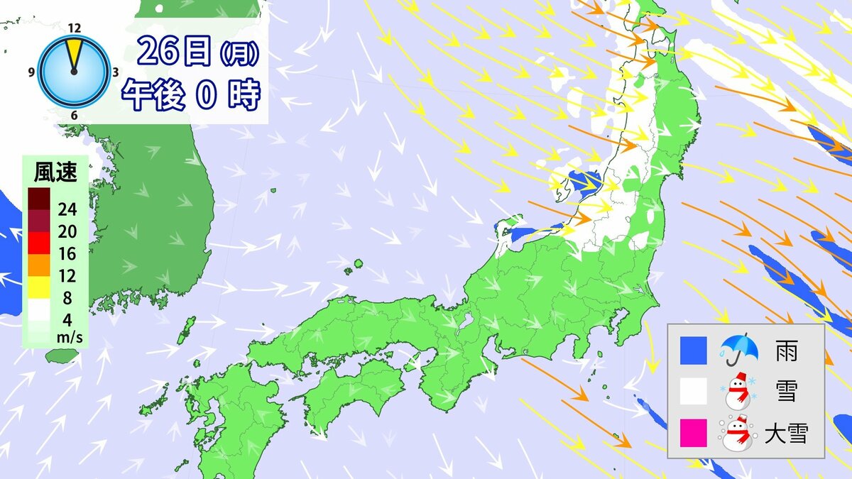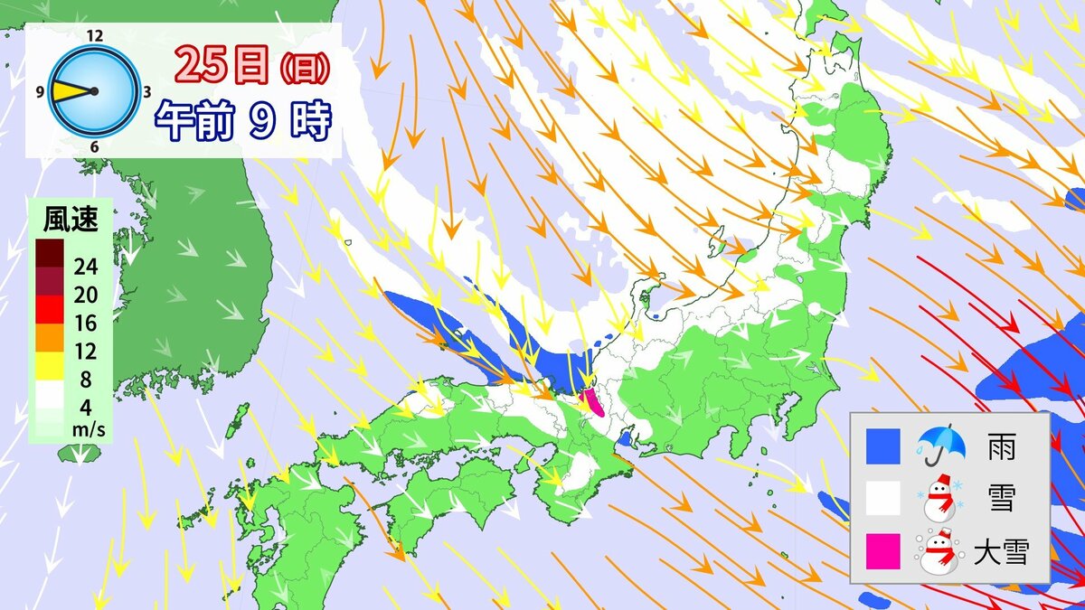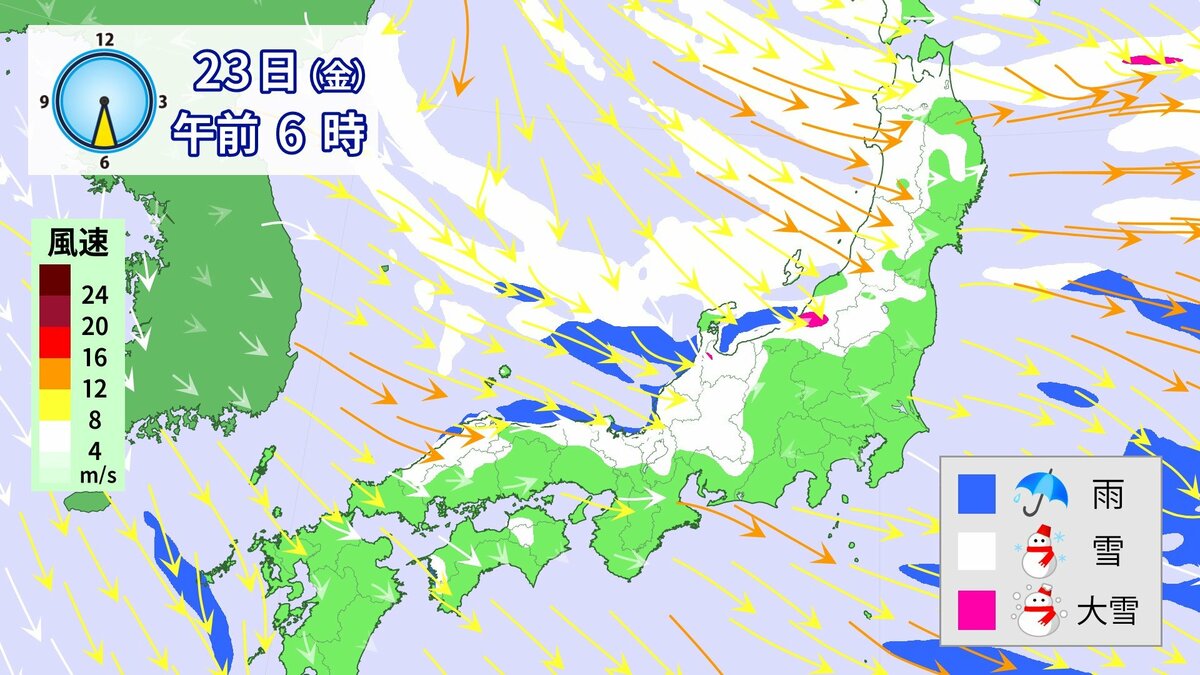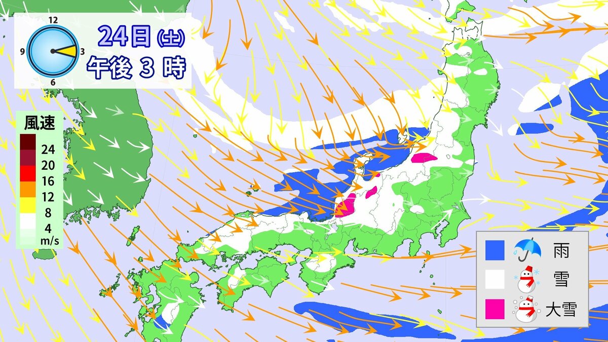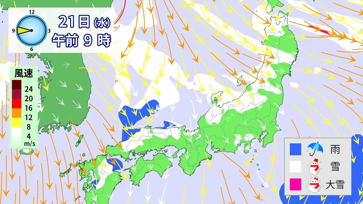 日本から西日本では日本海側を中心に、山沿いや山地だけではなく、平地でも大雪となる所があり、短時間に降雪が強まるおそれがあります。また、普段雪の少ない太平洋側でも大雪となる所がある見込みです。