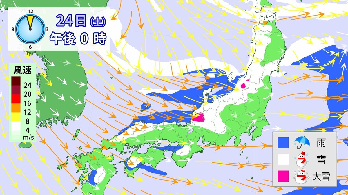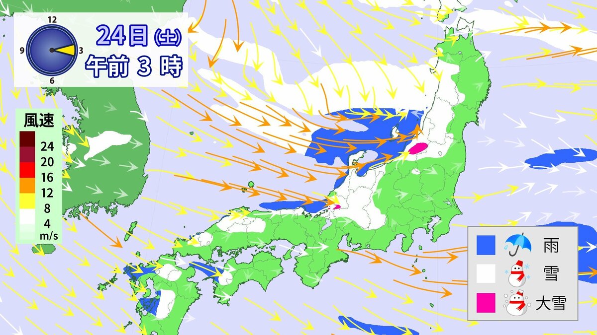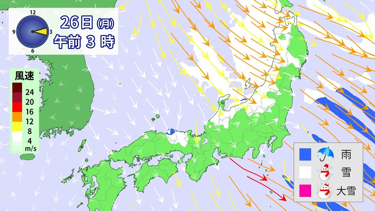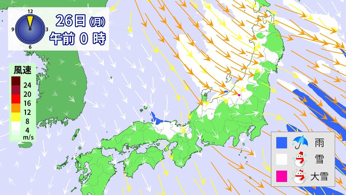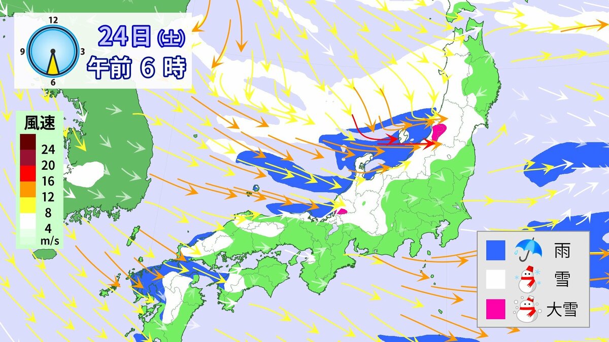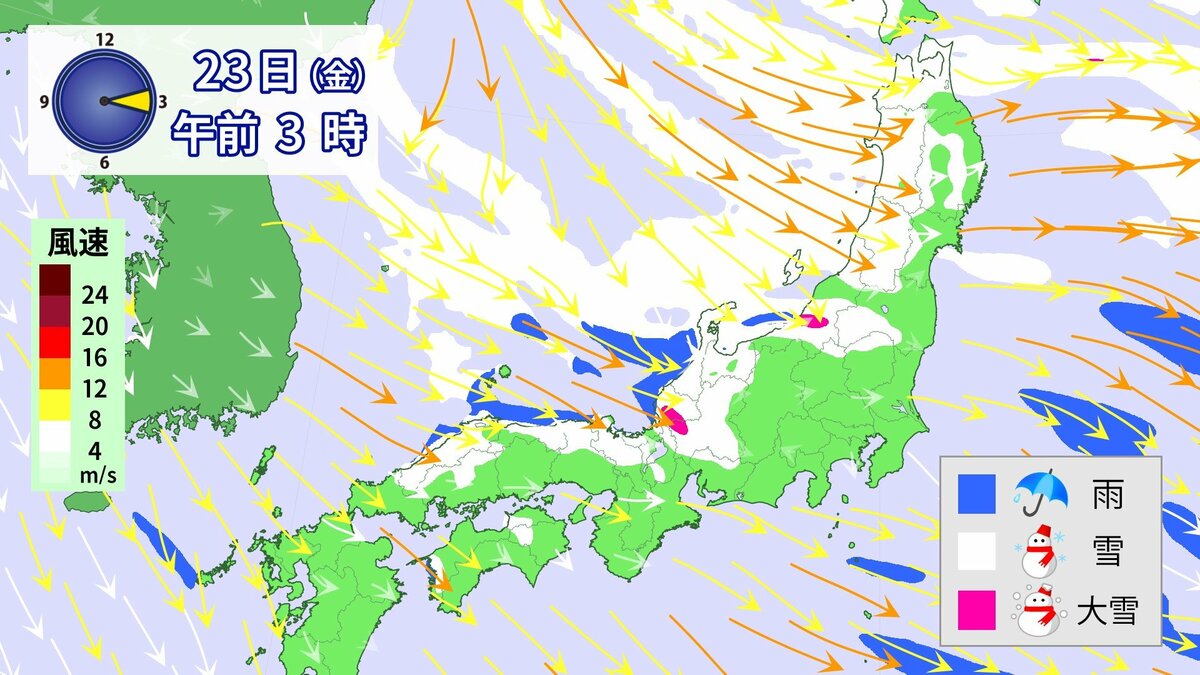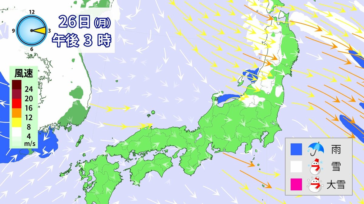 日本から西日本では日本海側を中心に、山沿いや山地だけではなく、平地でも大雪となる所があり、短時間に降雪が強まるおそれがあります。また、普段雪の少ない太平洋側でも大雪となる所がある見込みです。