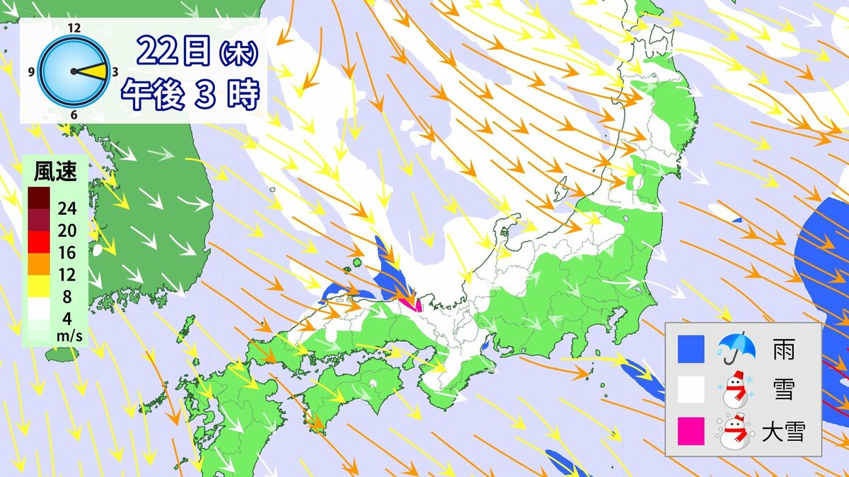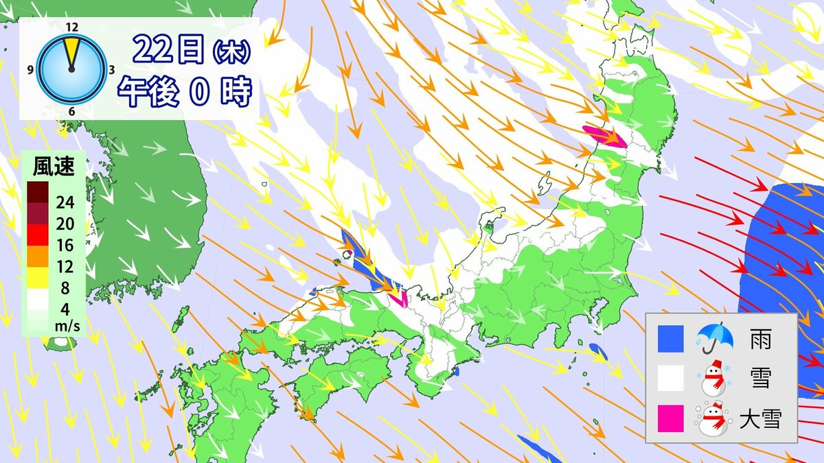 その後も25日頃にかけて、強い冬型の気圧配置が続くため、北日本から西日本の日本海側を中心に大雪が続き、積雪がさらに増えるおそれがあります。