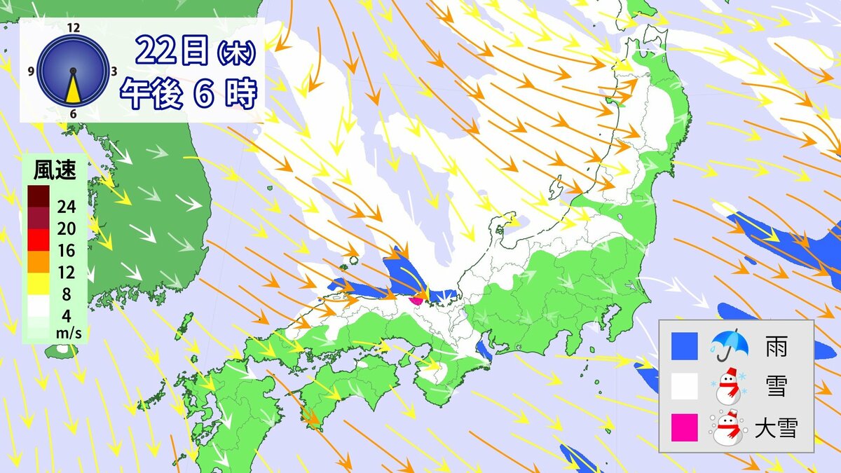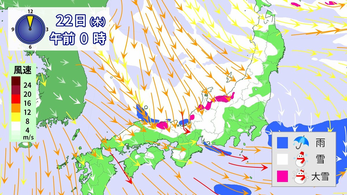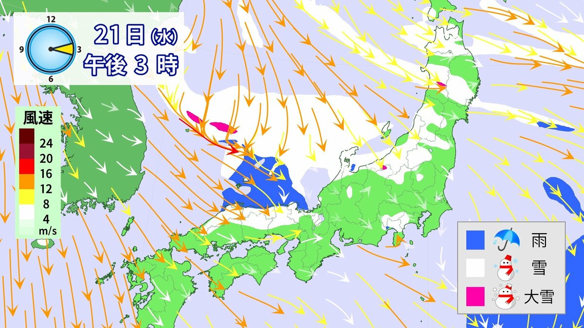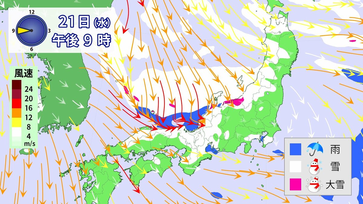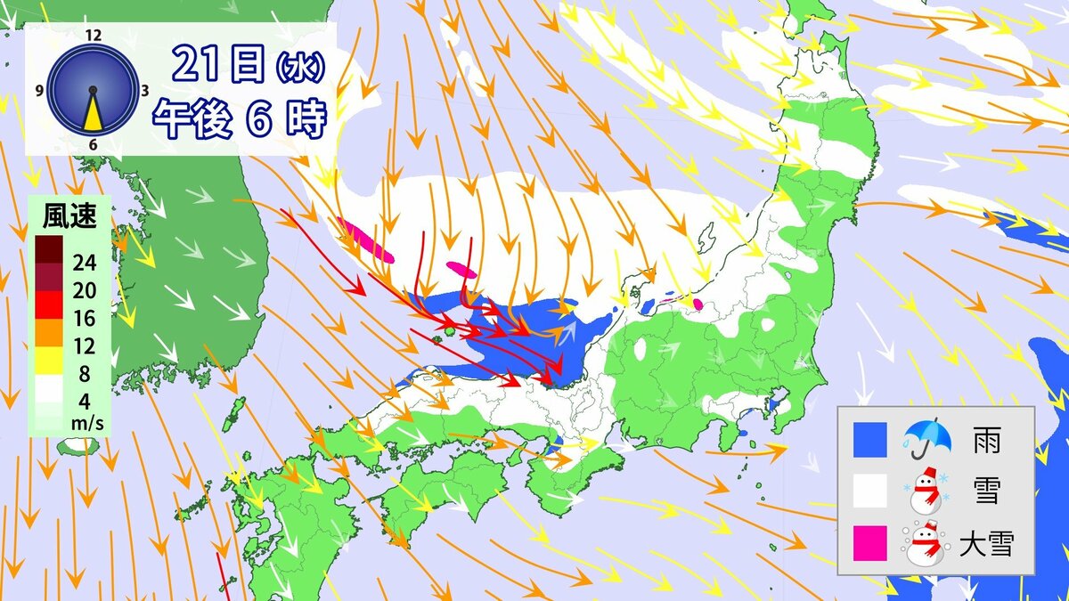 山陰では、21日夜遅くから22日夕方にかけて警報級の大雪となる見込みです。