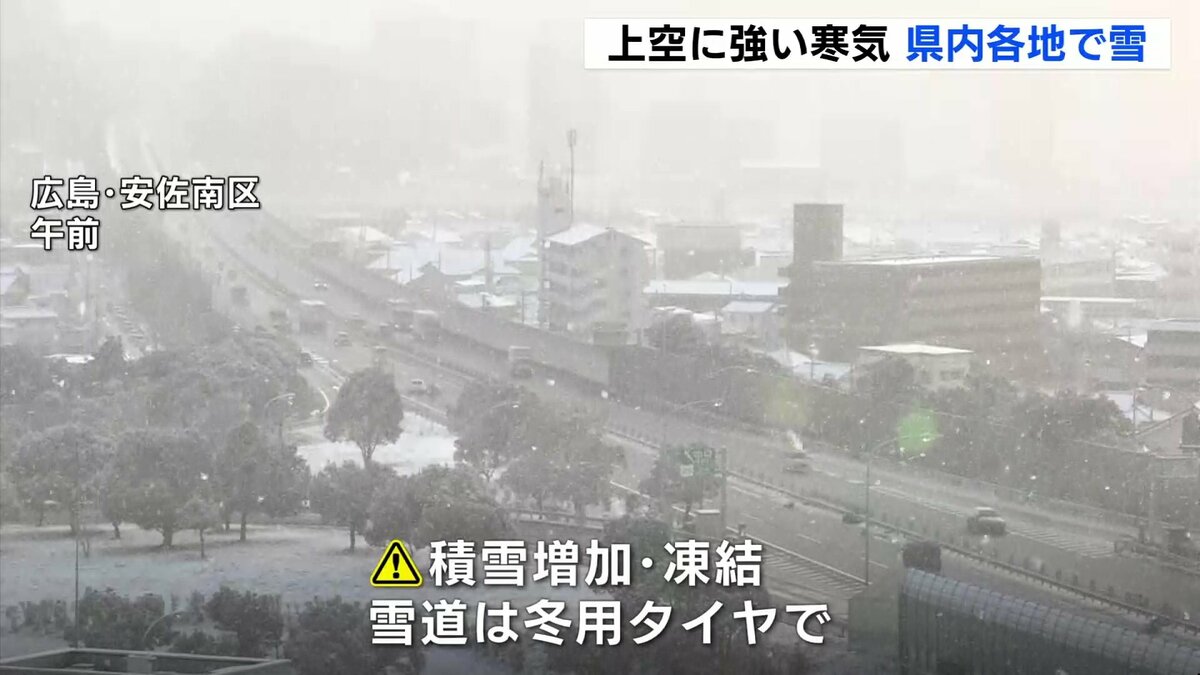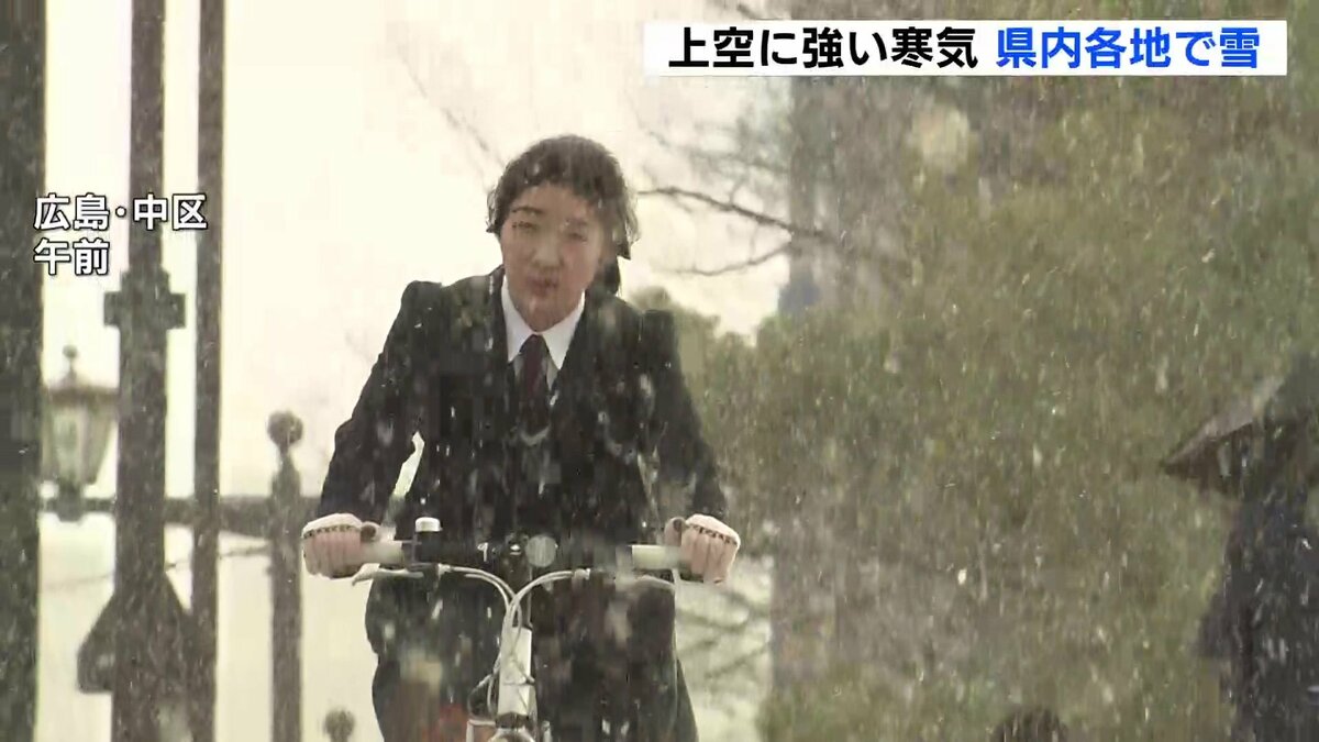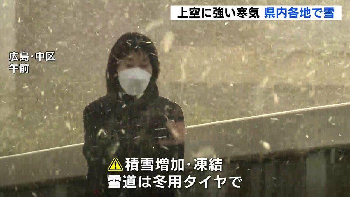 上空には強い寒気が流れ込み、広島県の各地でも雪が降っています。この影響で、けさは沿岸部でも雪が降り、積もるところがありました。