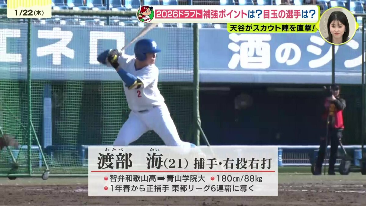 「青山学院大学のキャッチャーの渡部君の評価を」