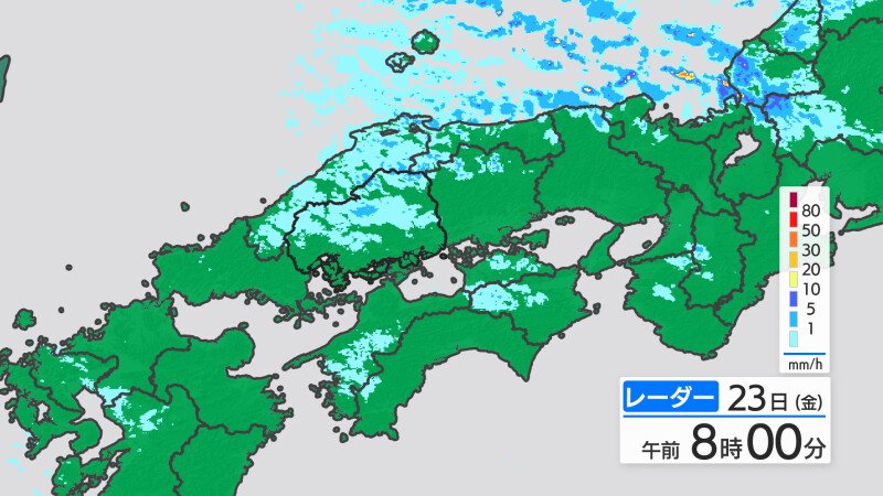 けさ(23日朝)の広島県内は、沿岸部では晴れている地点が多いですが、南部郊外や内陸部では積雪している所があります。けさも冷え込みが厳しく、広島市中区で-0.8℃ 庄原で-6.2℃(今季最低)などを記録しています。