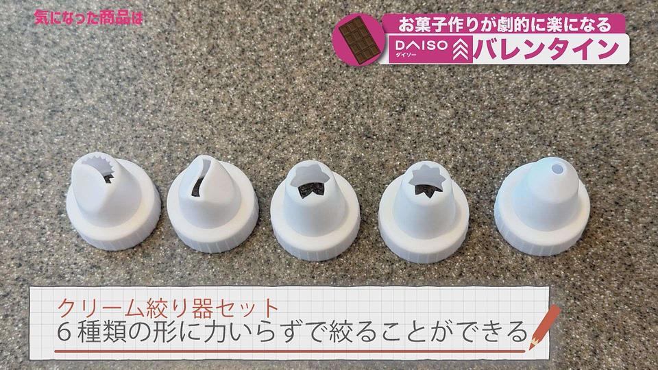 できたクリームをかわいくデコレーションする時に大活躍するのが、「クリーム絞り器セット」 (税込110円)。