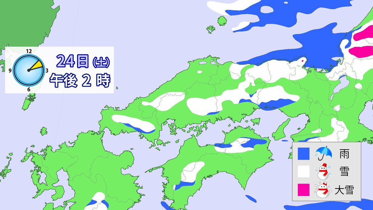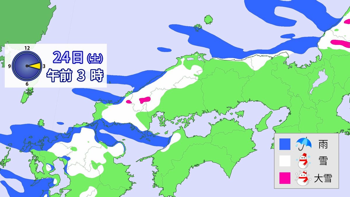 県内では、こんやからあすにかけて広い範囲に雪雲が流れ込むでしょう。南部でも内陸部を中心に積雪する所がある見込みです。あす朝の路面状況の悪化にご注意ください。
