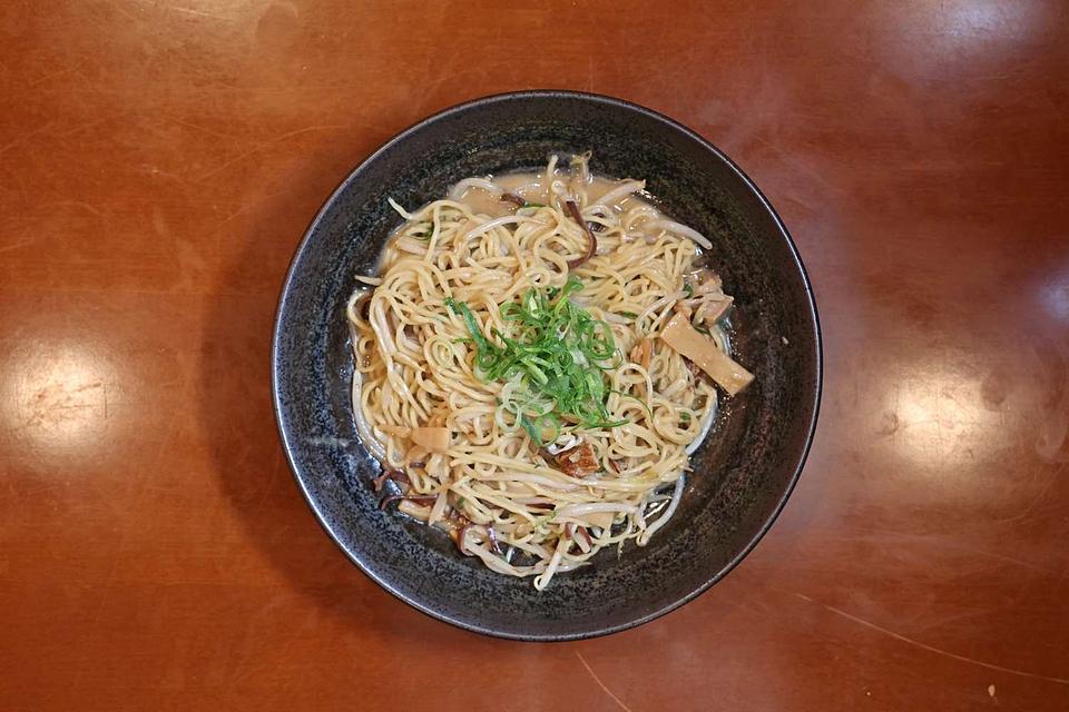 味噌スープの「こやぶらぁめん」が人気の「らぁめん居酒屋こやぶ」。呉では珍しい「焼らぁめん」が味わえる。醤油とんこつスープで炒めた一皿で、+50円のニンニク追加でガツンとした味に変化。人気メニューの鶏のからあげとの相性も抜群でオススメの組み合わせ。