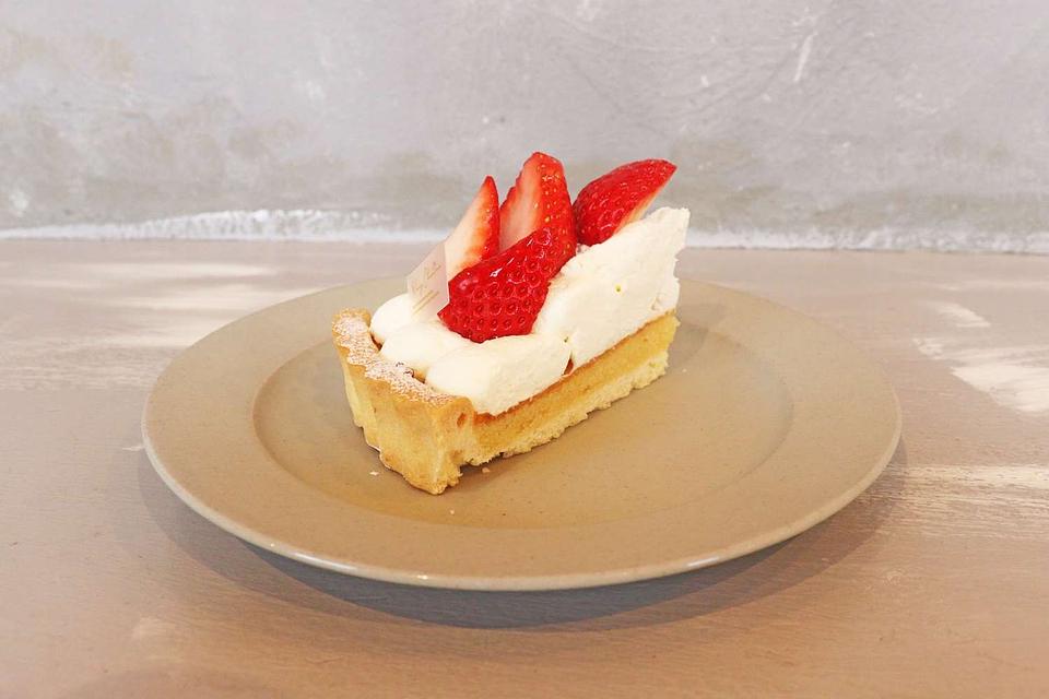国産の小麦粉とバターを使用した、焼き菓子やケーキも好評(持ち帰りOK)。人気の「いちごタルト(650円)」はいちごとクリームがたっぷり!