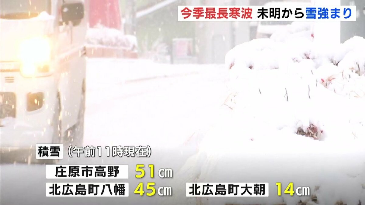 上空に居すわる強い寒気の影響で24日未明から朝にかけて、広島県内の山沿いを中心に再び雪が強まりました。
