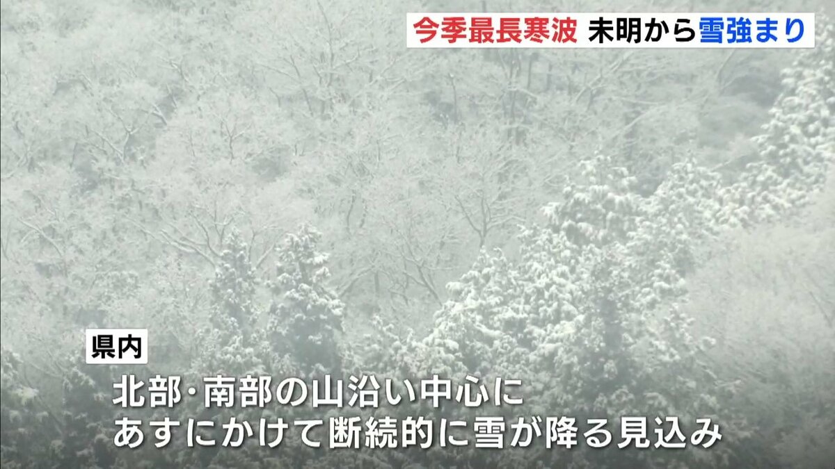 上空に居すわる強い寒気の影響で、北部や南部の山沿いではあすにかけて断続的に雪が降る見込みです。大雪や路面の凍結などに引き続き注意してください。
